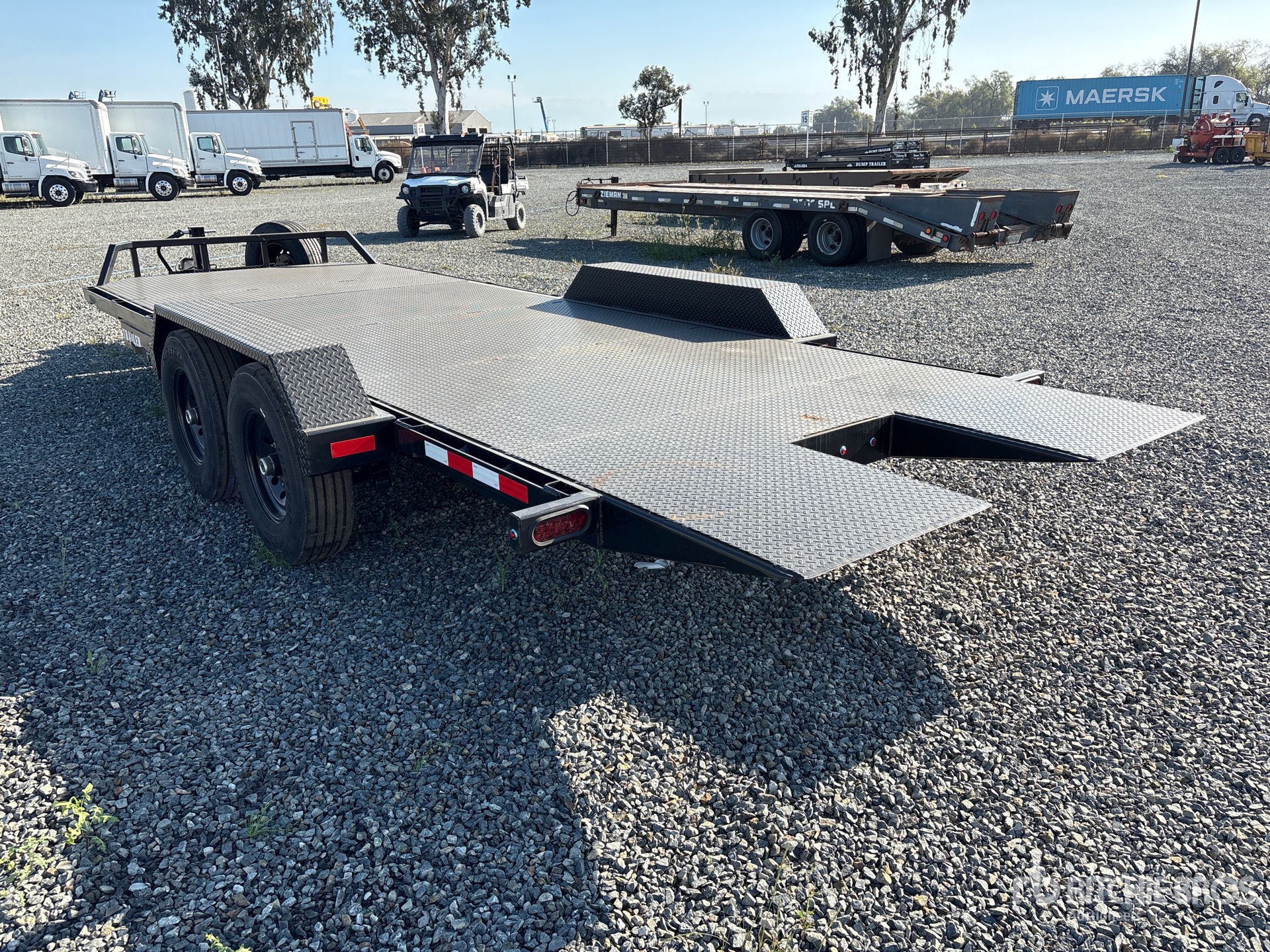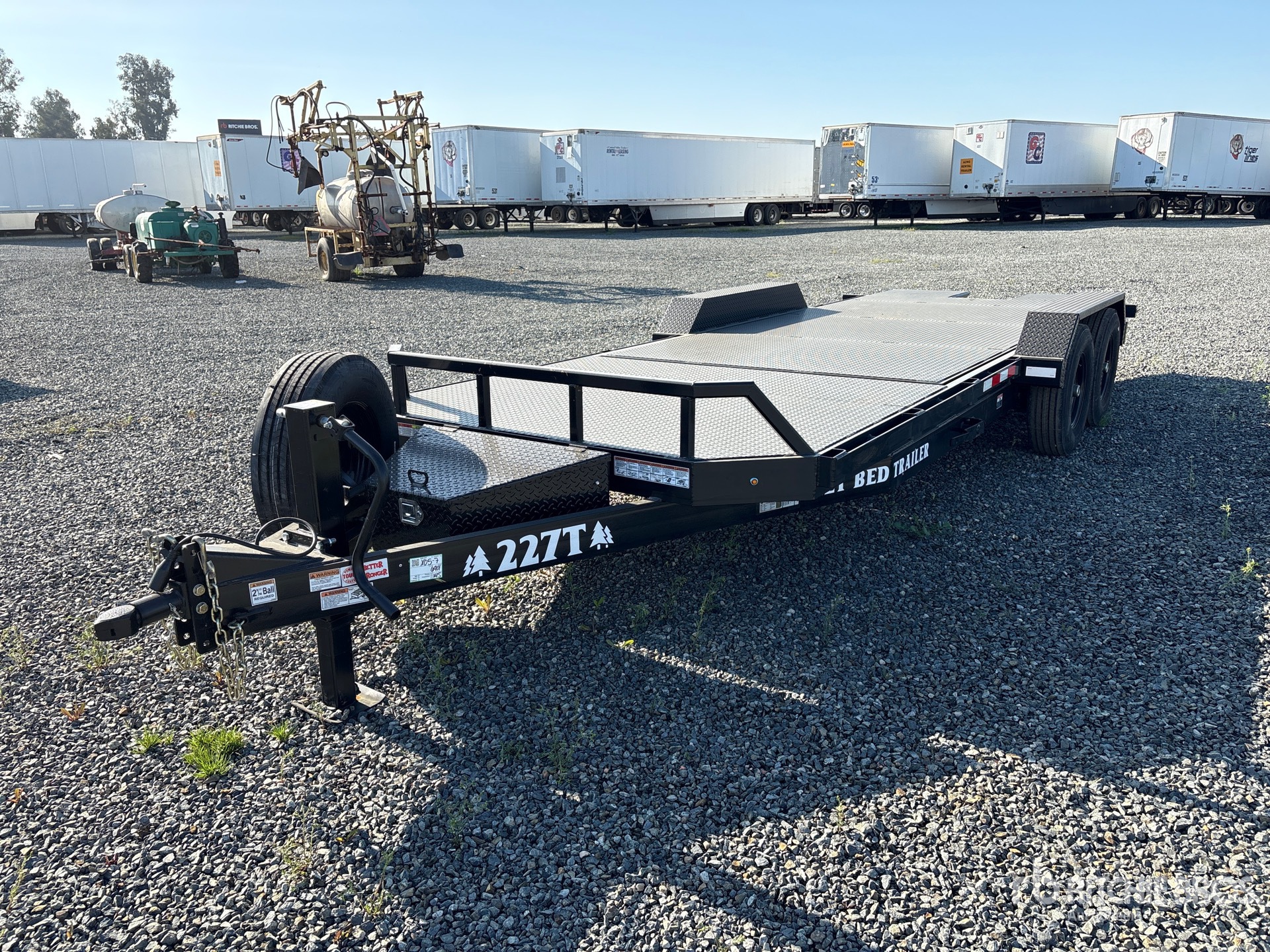 Attelage à boule, suspension à ressorts, compartiments de rangement, plateau inclinable de 4,83 m (15 pi 10 po), largeur de plateau de 2,03 m (80 po), pneus 235/80R16, PTAC de 6 350 kg (14 000 lb)