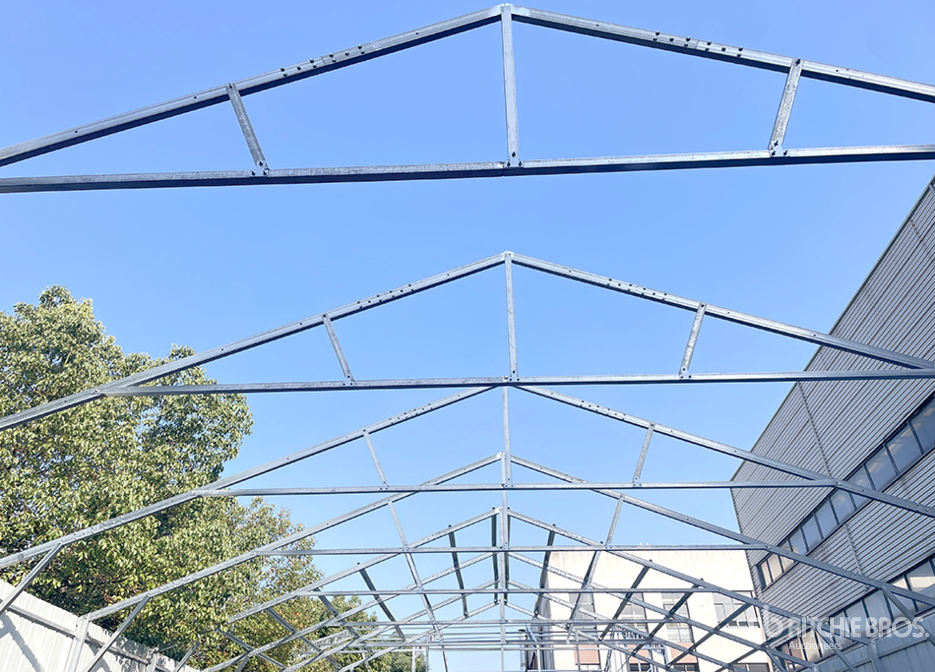 Hauteur totale de 5,5 m (18 pi), hauteur des parois latérales de 3,4 m (11 pi), quantité de (3) caissons - Permet de construire (1) bâtiment de stockage