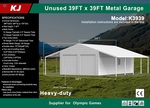 2026 KJ K3939 39 ft x 39 ft Double Garage Metal Bâtiment d'entreposage (Unused)