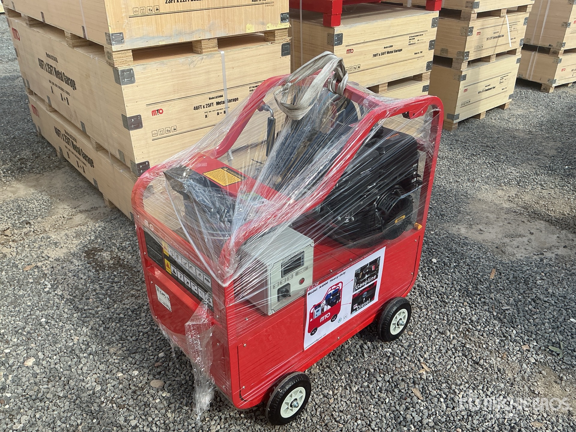 Chauffe-eau haute pression (4 000 psi), tuyau d'arrosage, lance de pulvérisation, moteur à essence monocylindre de 420 cm³, débit de 4,0 gal/min. Les images présentées sont des photos d'illustration. Article neuf.