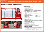 Pression nominale de 4 000 psi, chauffe-eau, alimentation en eau de 250 gal, tuyau, lance de pulvérisation, moteur à essence monocylindre de 420 cm³, 4,0 gpm
