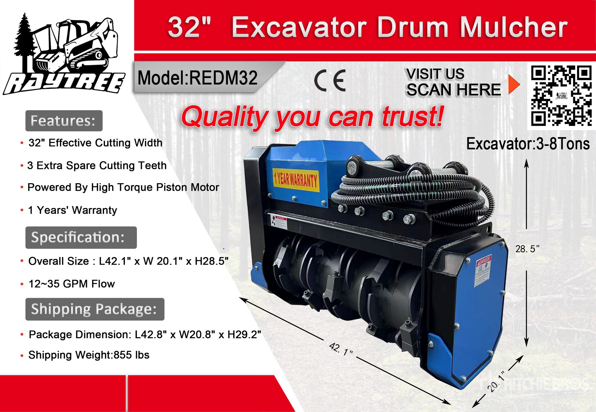 Les dimensions données ne sont qu’une estimation. Les dimensions réelles pour le chargement peuvent varier en fonction de la hauteur du camion/remorque et de la configuration/position de la machine une fois chargée. L’acheteur est responsable de la prise de mesures de toutes les charges avant de quitter le site d’enchères, et ce, afin de s’assurer que la charge peut être transportée en toute sécurité. Toutes les dimensions doivent être vérifiées par l’acheteur. Veuillez ne pas vous fier à ces dimensions pour le transport.