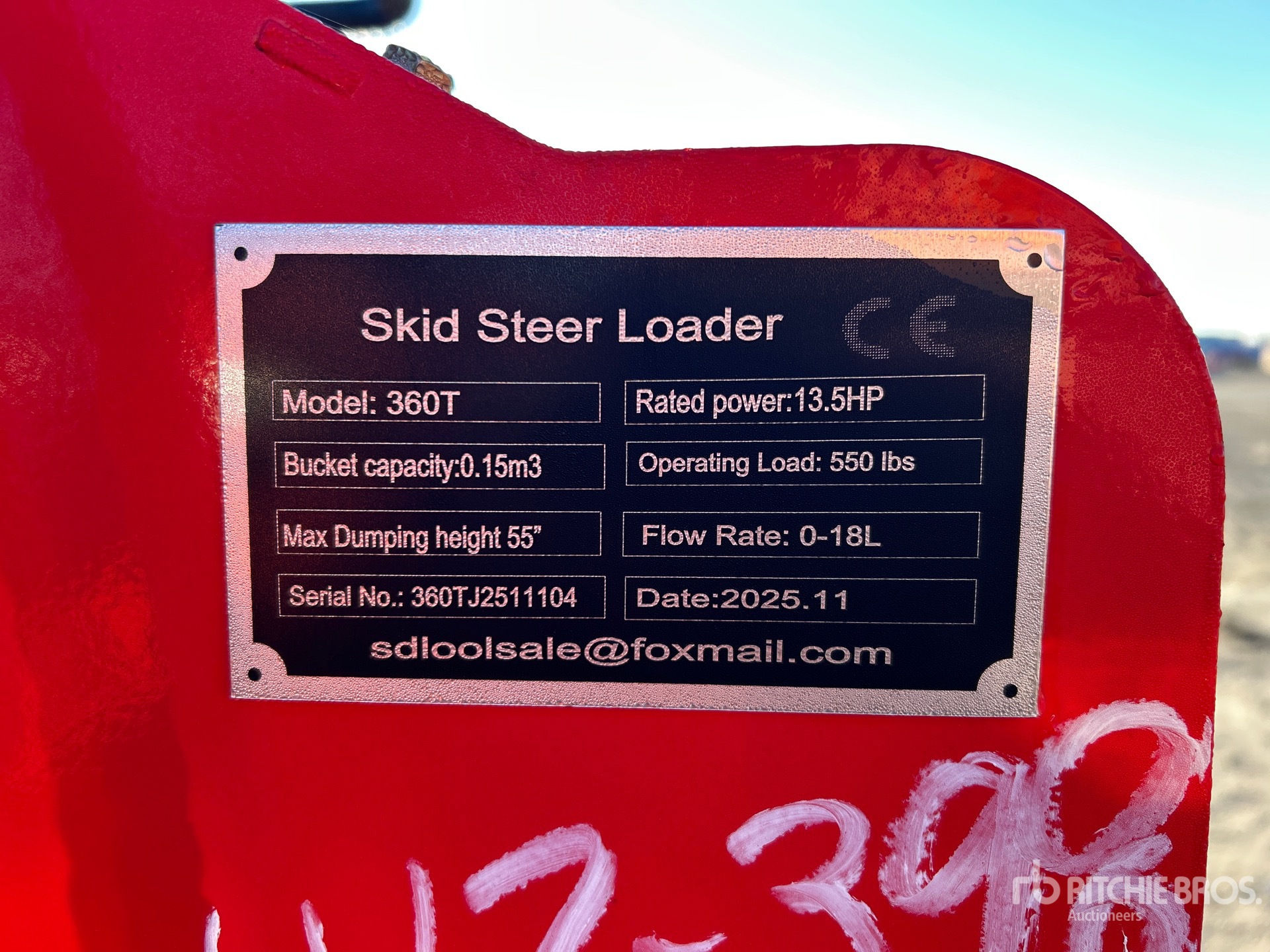 Les Informations détaillées de l’équipement sont d’une portée limitée, et les Encans Ritchie Bros. n’ont inspecté aucun autre aspect ou composant de l’équipement que ceux présentés expressément. Sauf indication précise, nous n’offrons aucune représentation ou garantie, officielle ou implicite, sur l’équipement ou ses composants, sans aucune limite de représentation ou de garantie en ce qui concerne la fonctionnalité, la conformité à toute norme de sécurité ou l’exigence de toute autorité ou agence de régulation en vigueur, l’adaptation à un quelconque usage, ou la valeur commerciale. Il vous est fortement conseillé d’effectuer votre propre inspection détaillée de l’équipement avant d’enchérir.