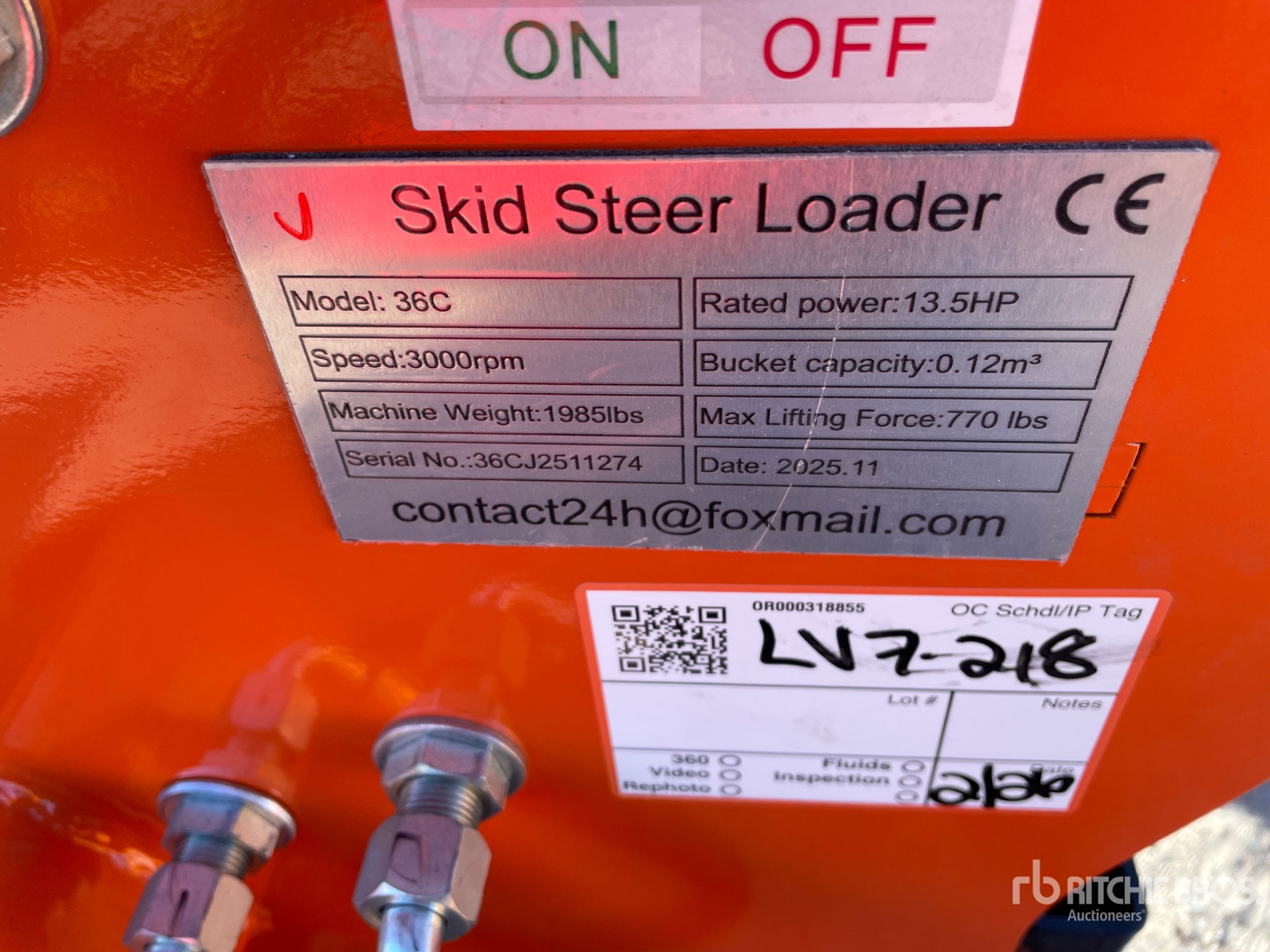 Les Informations détaillées de l’équipement sont d’une portée limitée, et les Encans Ritchie Bros. n’ont inspecté aucun autre aspect ou composant de l’équipement que ceux présentés expressément. Sauf indication précise, nous n’offrons aucune représentation ou garantie, officielle ou implicite, sur l’équipement ou ses composants, sans aucune limite de représentation ou de garantie en ce qui concerne la fonctionnalité, la conformité à toute norme de sécurité ou l’exigence de toute autorité ou agence de régulation en vigueur, l’adaptation à un quelconque usage, ou la valeur commerciale. Il vous est fortement conseillé d’effectuer votre propre inspection détaillée de l’équipement avant d’enchérir.