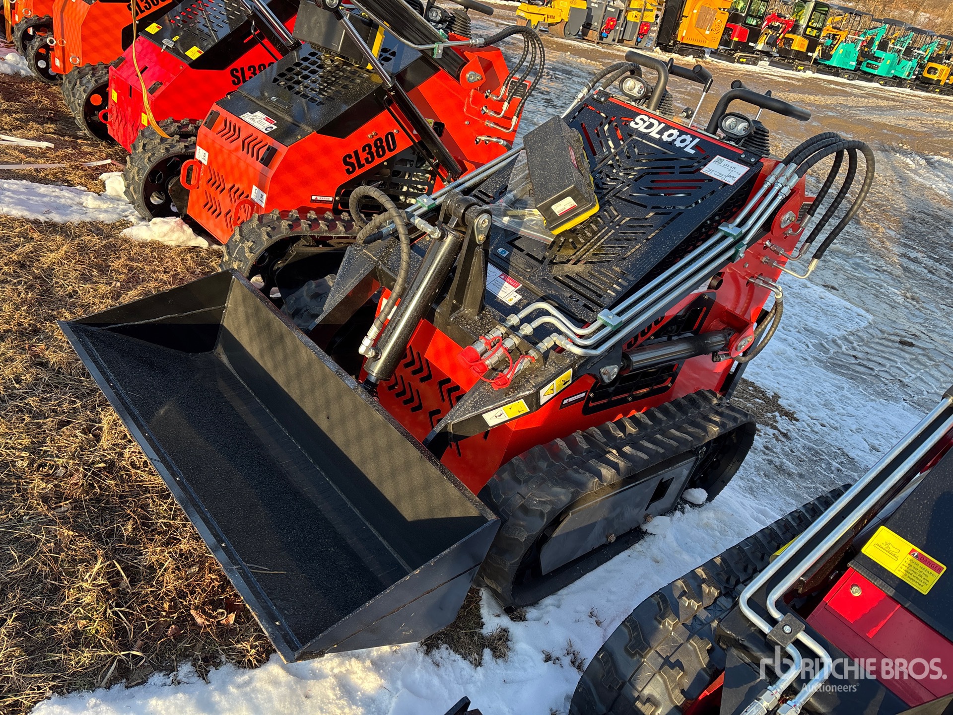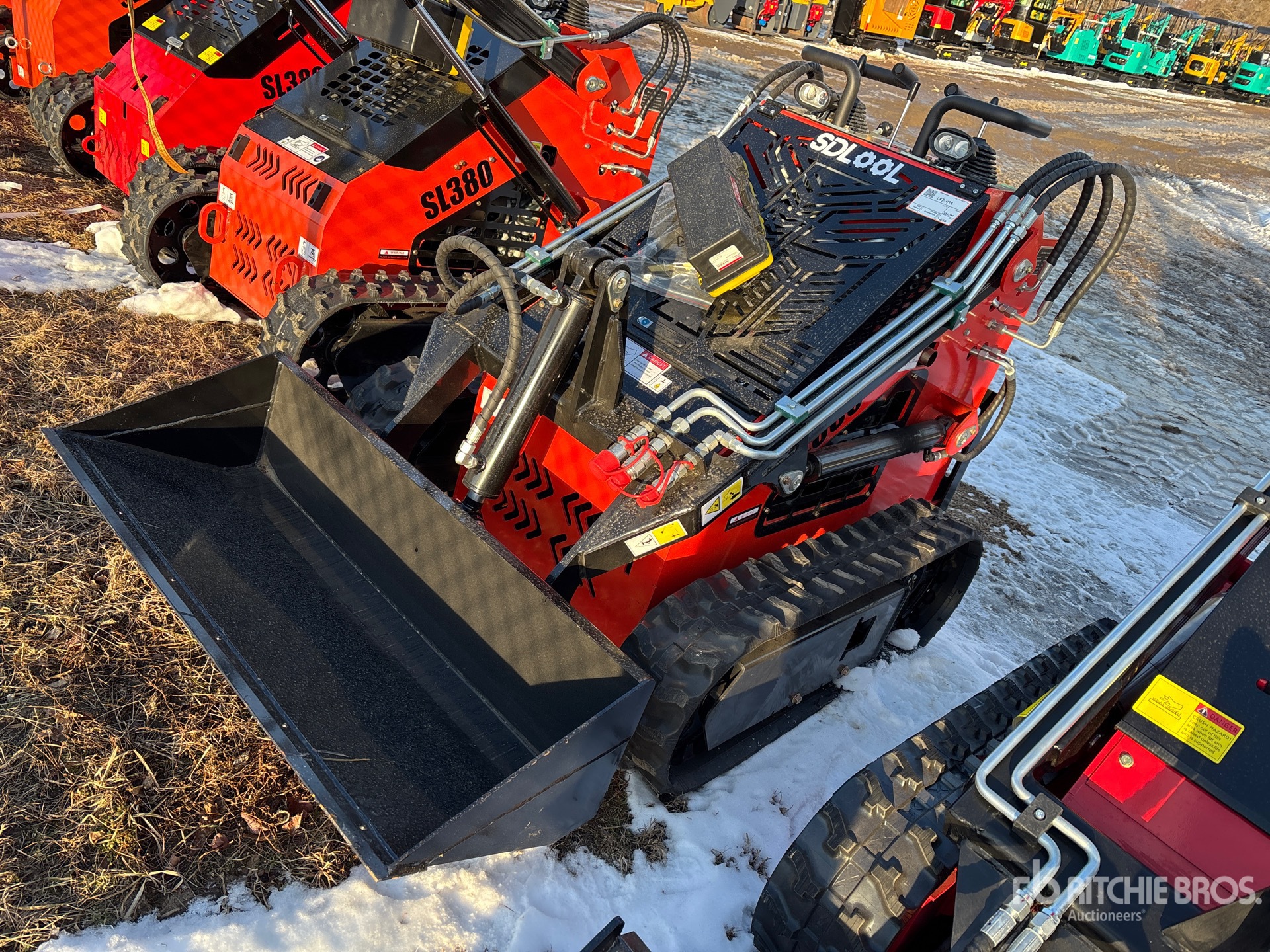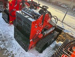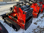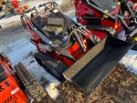 Poste de conduite ouvert, direction par joystick, courroies de chenille de 18 cm (7 po), coupleur manuel, godet de 112 cm (44 po)