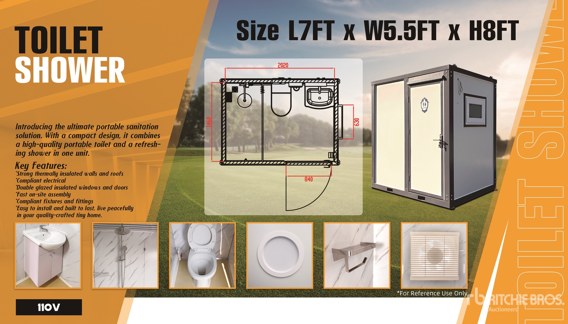 ( 1 ) Lavabos, ( 1 ) Douches, ( 1 ) Toilettes