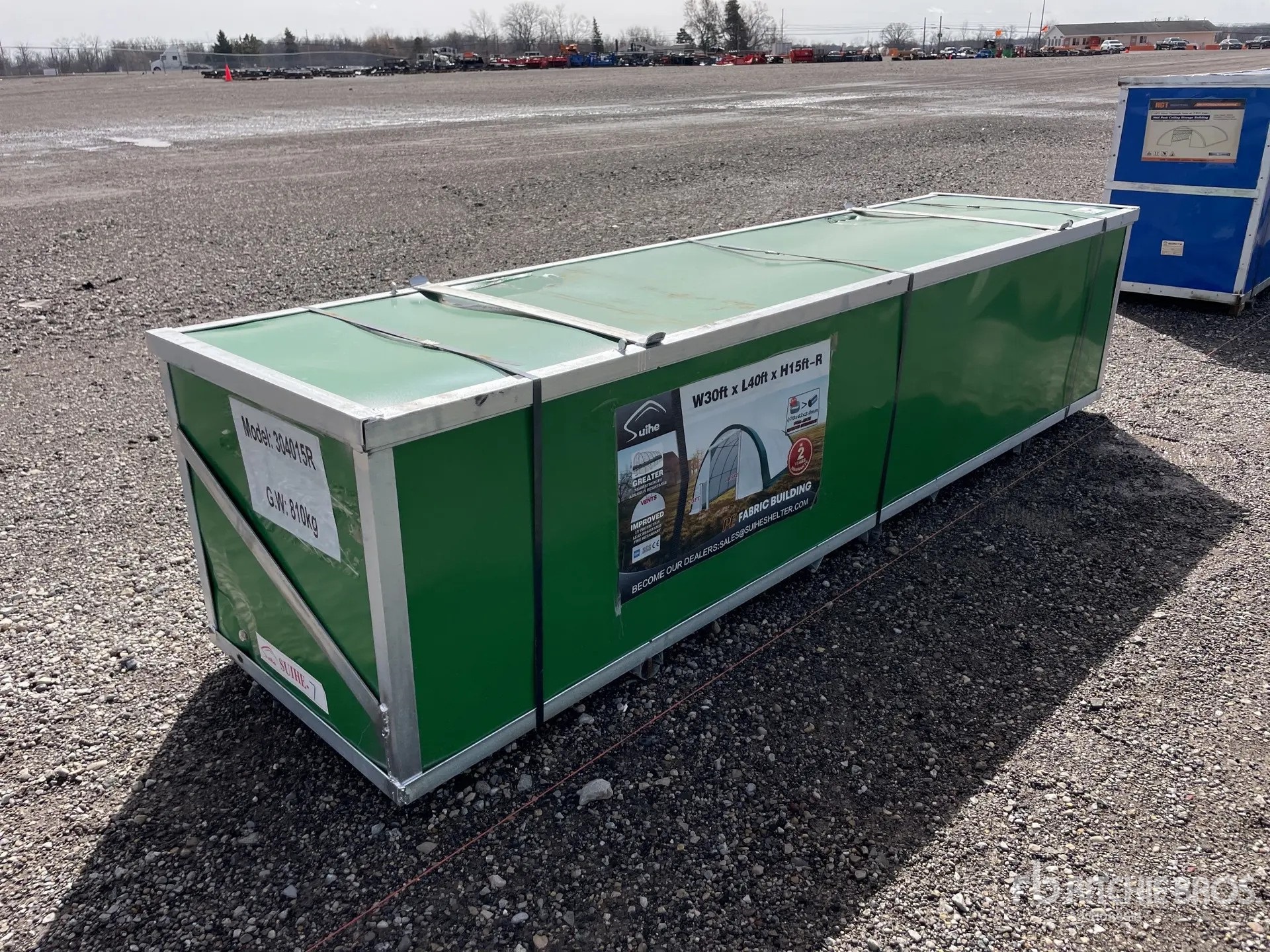 Les dimensions données ne sont qu’une estimation. Les dimensions réelles pour le chargement peuvent varier en fonction de la hauteur du camion/remorque et de la configuration/position de la machine une fois chargée. L’acheteur est responsable de la prise de mesures de toutes les charges avant de quitter le site d’enchères, et ce, afin de s’assurer que la charge peut être transportée en toute sécurité. Toutes les dimensions doivent être vérifiées par l’acheteur. Veuillez ne pas vous fier à ces dimensions pour le transport.