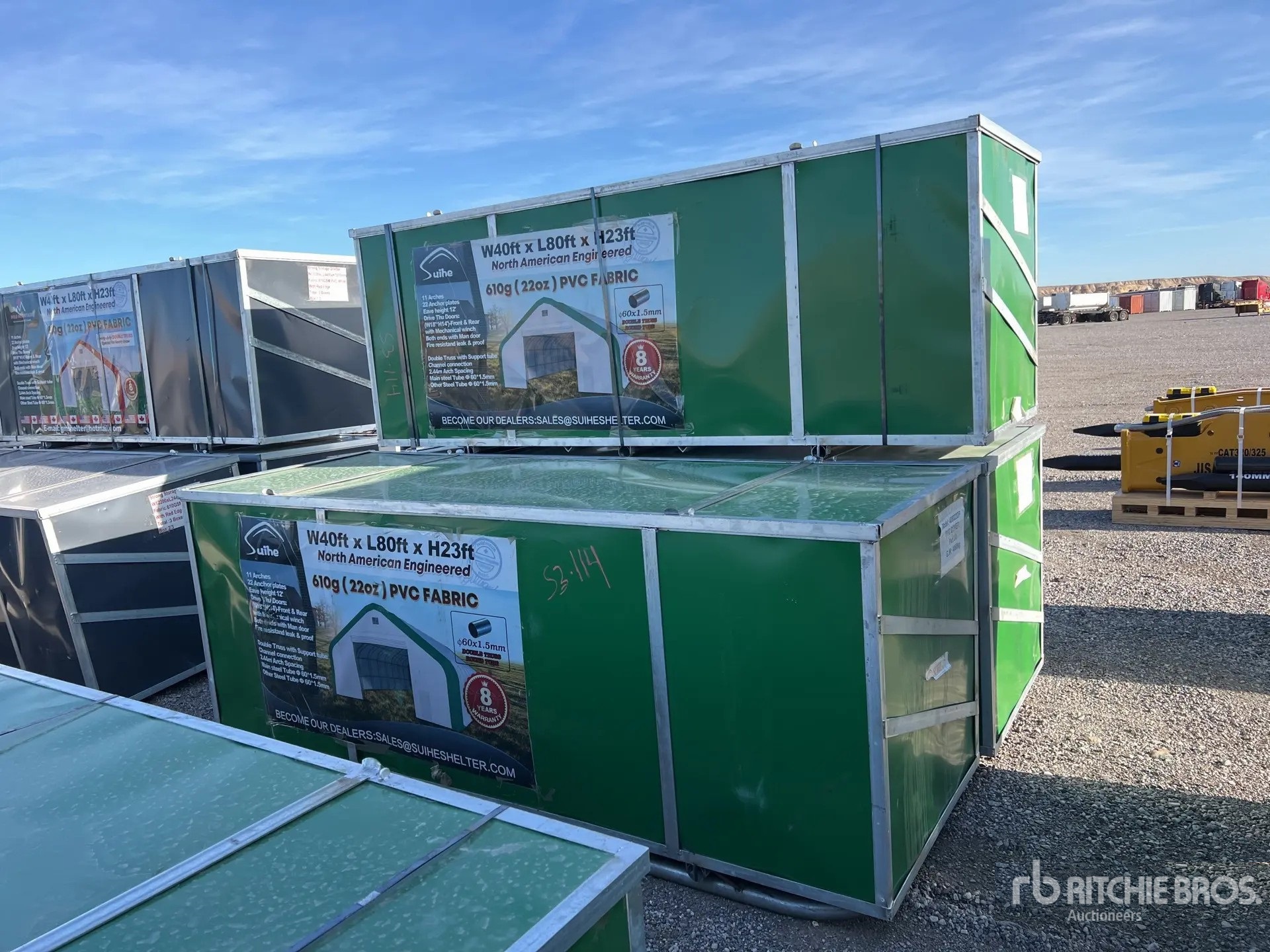 Les dimensions données ne sont qu’une estimation. Les dimensions réelles pour le chargement peuvent varier en fonction de la hauteur du camion/remorque et de la configuration/position de la machine une fois chargée. L’acheteur est responsable de la prise de mesures de toutes les charges avant de quitter le site d’enchères, et ce, afin de s’assurer que la charge peut être transportée en toute sécurité. Toutes les dimensions doivent être vérifiées par l’acheteur. Veuillez ne pas vous fier à ces dimensions pour le transport.