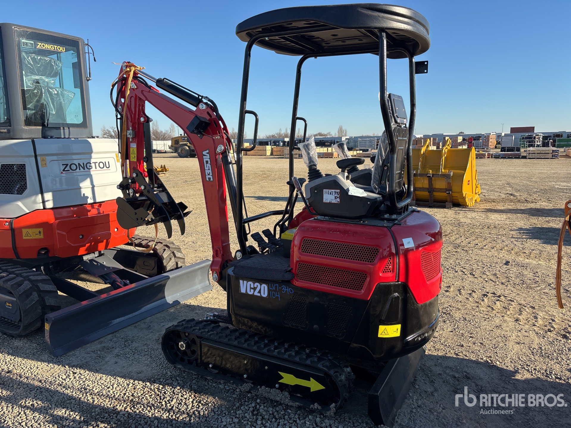 Étiquette EPA américaine, bras de 86 cm, circuit hydraulique auxiliaire, lame de remblayage, chenilles en caoutchouc de 20 cm, godet de creusement de 46 cm, pouce manuel