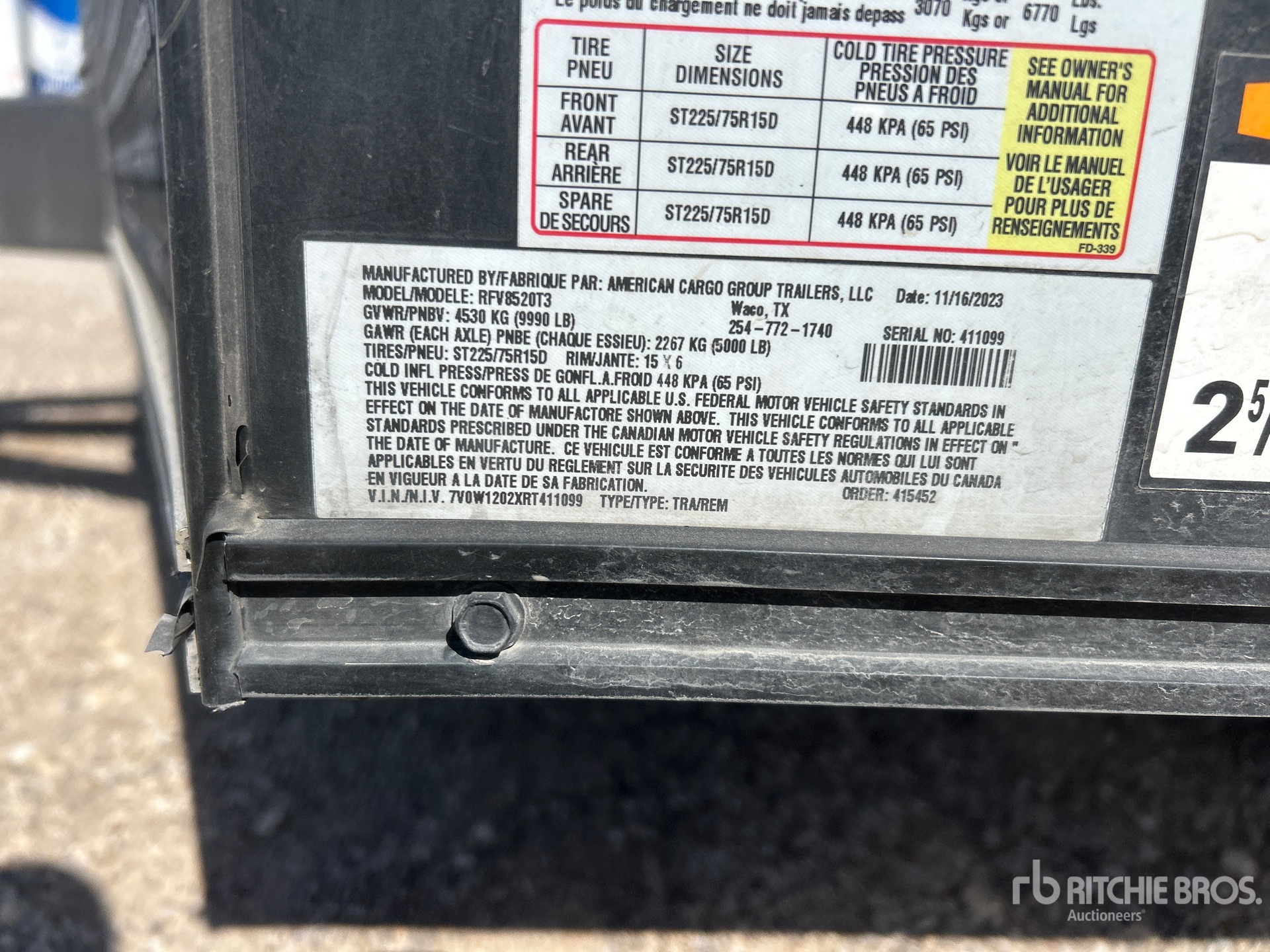 Les Informations détaillées de l’équipement sont d’une portée limitée, et les Encans Ritchie Bros. n’ont inspecté aucun autre aspect ou composant de l’équipement que ceux présentés expressément. Sauf indication précise, nous n’offrons aucune représentation ou garantie, officielle ou implicite, sur l’équipement ou ses composants, sans aucune limite de représentation ou de garantie en ce qui concerne la fonctionnalité, la conformité à toute norme de sécurité ou l’exigence de toute autorité ou agence de régulation en vigueur, l’adaptation à un quelconque usage, ou la valeur commerciale. Il vous est fortement conseillé d’effectuer votre propre inspection détaillée de l’équipement avant d’enchérir.