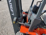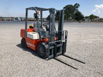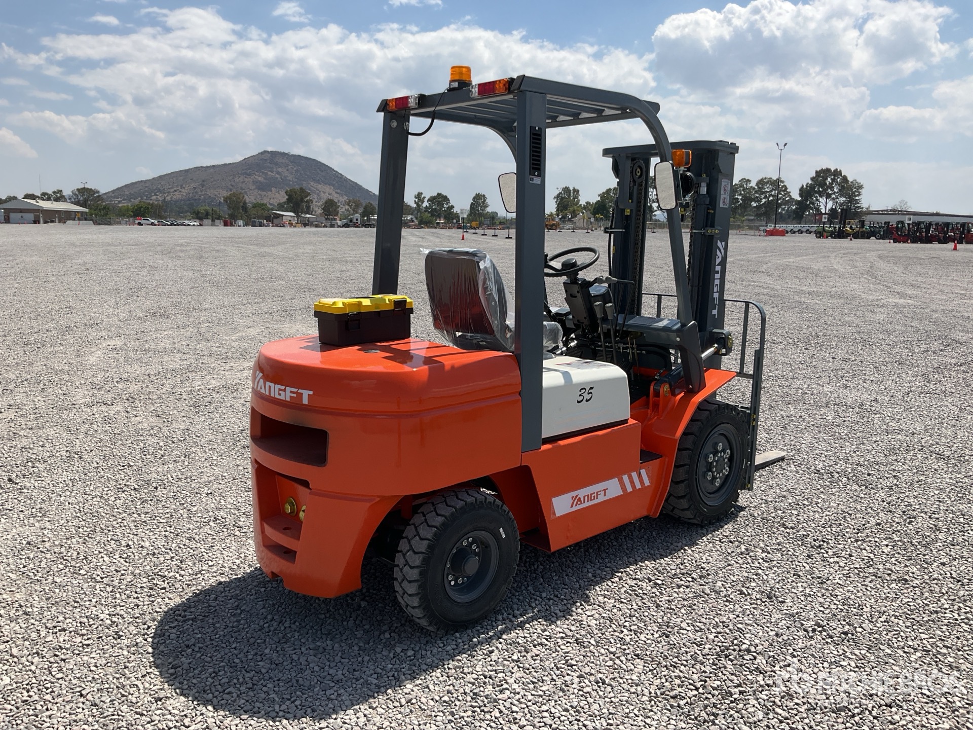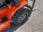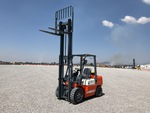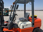 Mât à deux étages, hauteur de levage maximale de 119 pouces, hauteur de mât abaissée de 82 pouces, fourches de 42 pouces, moteur diesel à 4 cylindres
