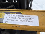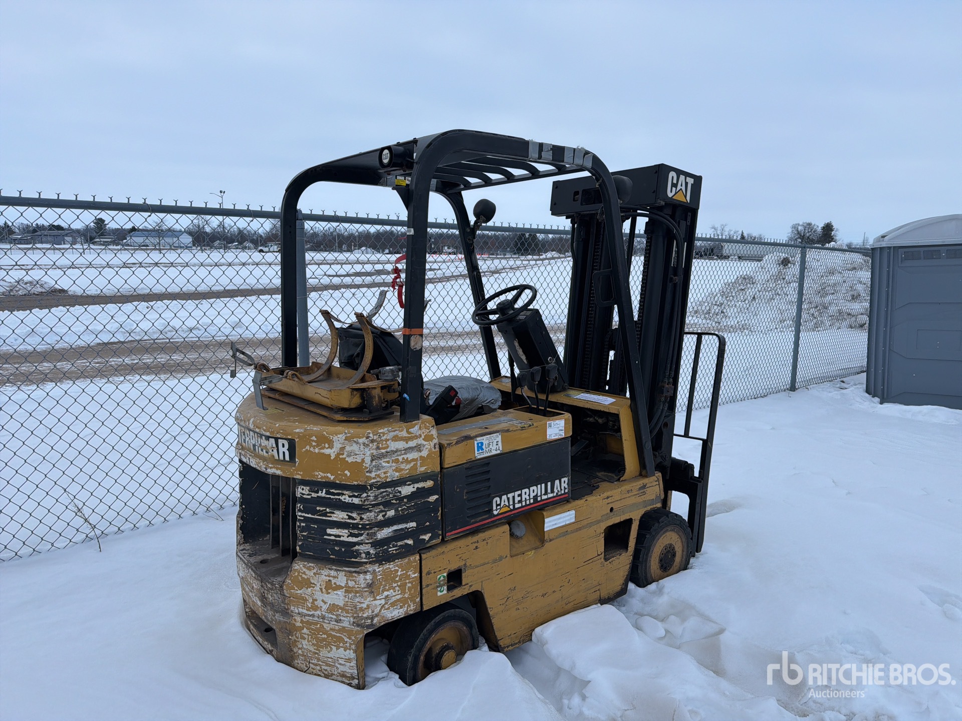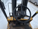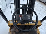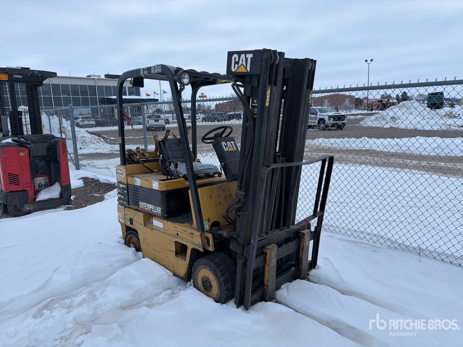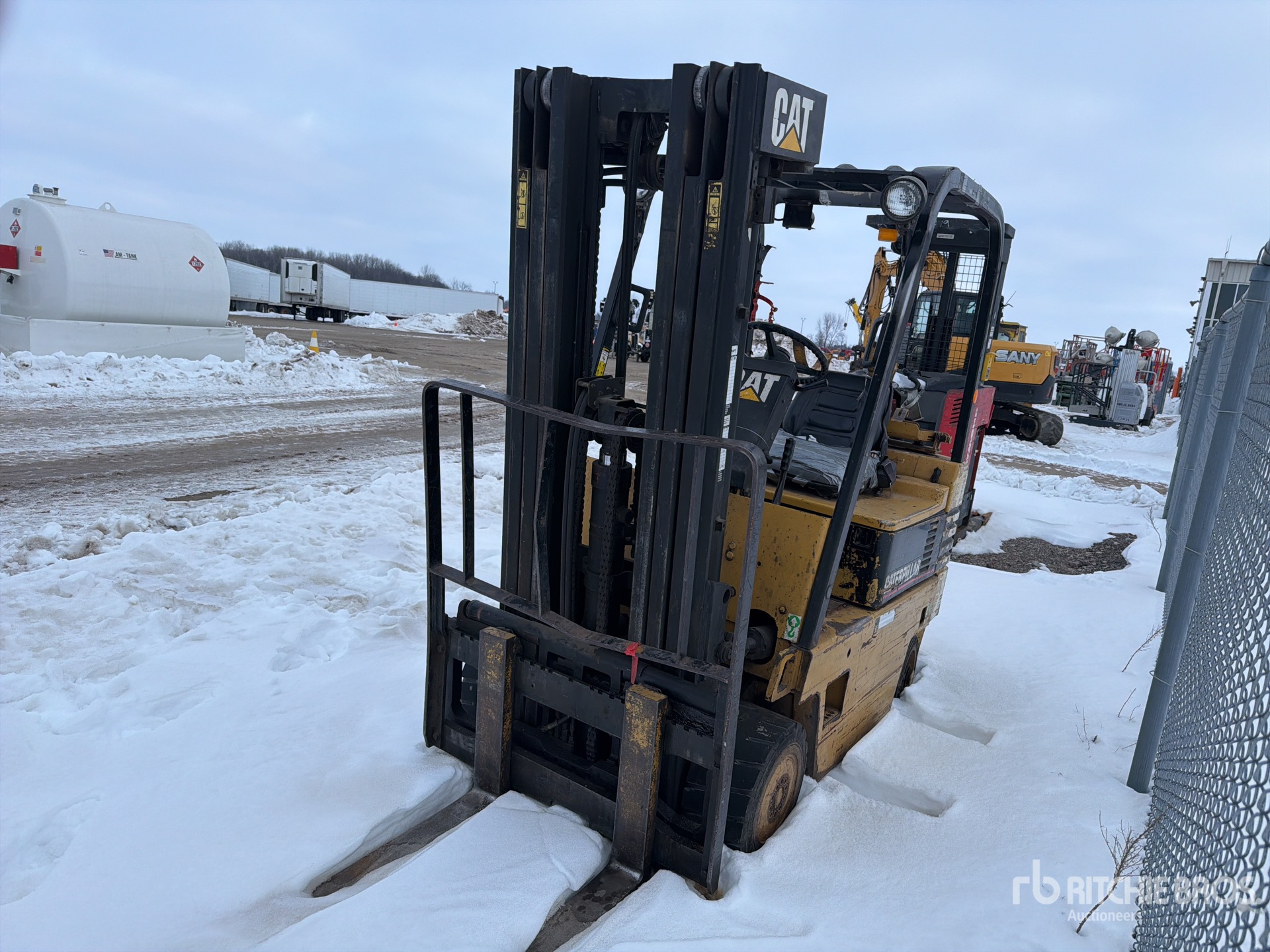 Mât à 3 sections, hauteur de levage maximale de 4,78 m, hauteur de mât abaissée de 2,59 m, fourches de 1,07 m, déport latéral, conforme à la norme Tier 4, moteur GPL 4 cylindres Cat 1404