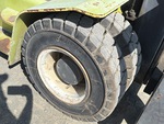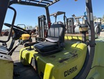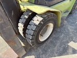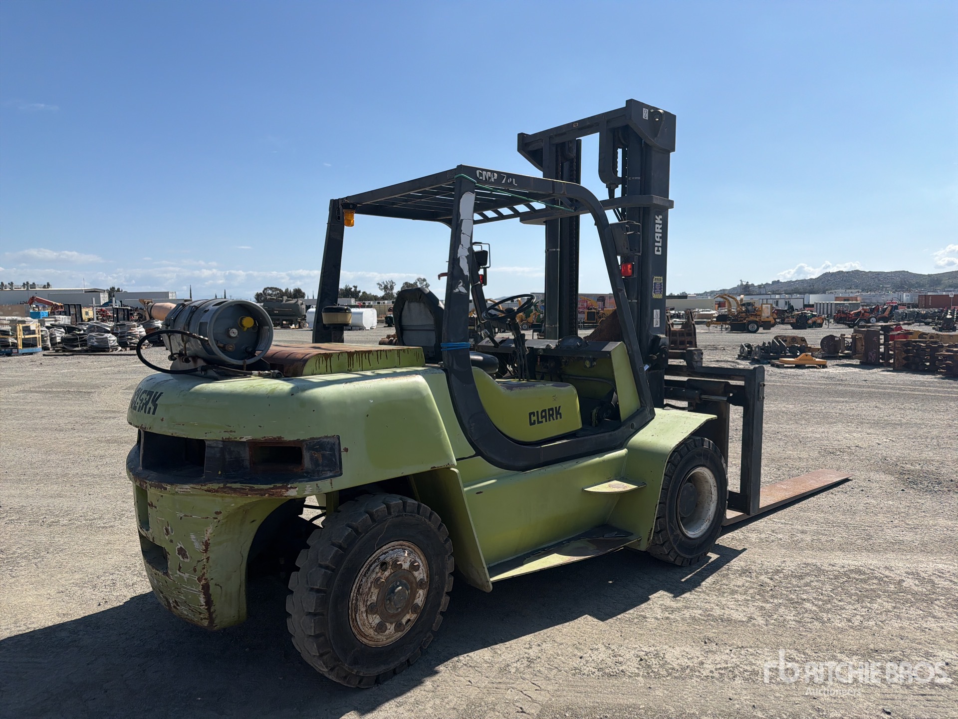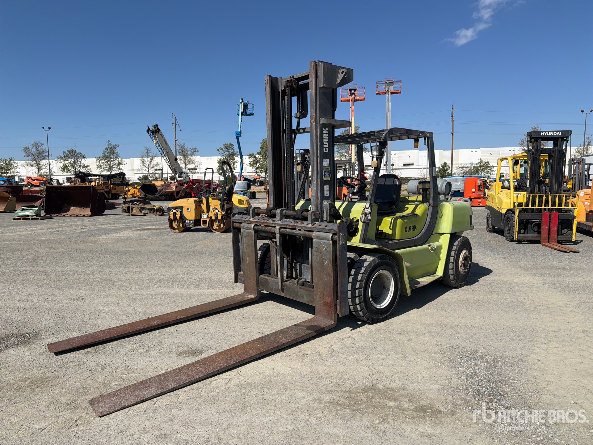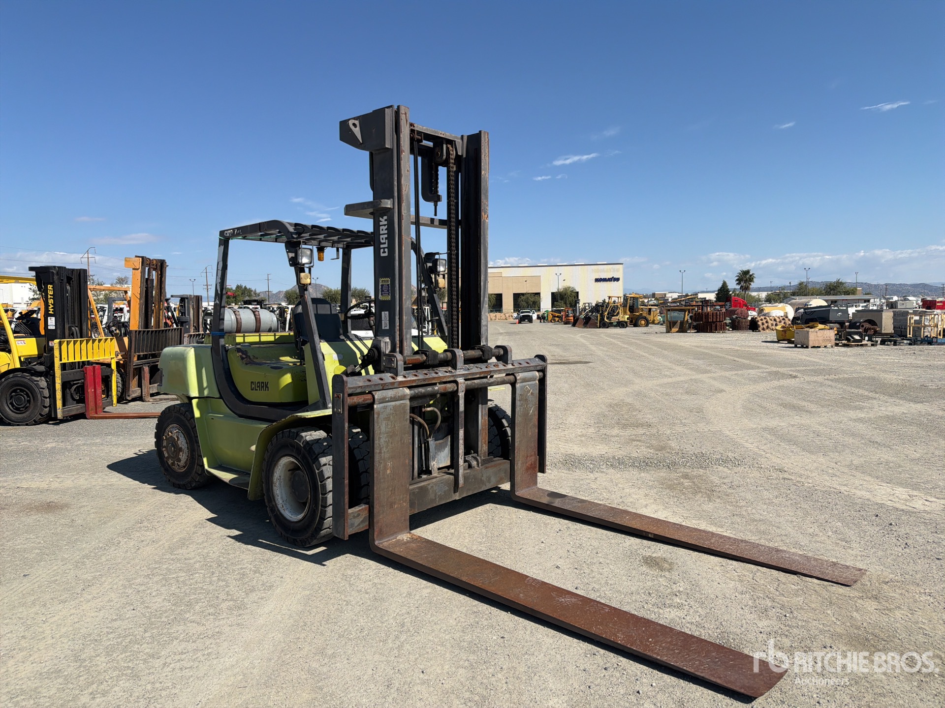 Mât à deux étages, hauteur de levage maximale de 4 011 mm, hauteur de mât abaissée de 2 950 mm, écartement des fourches de 2 440 mm, déport latéral, moteur GM 6 cylindres 4,3 L GPL