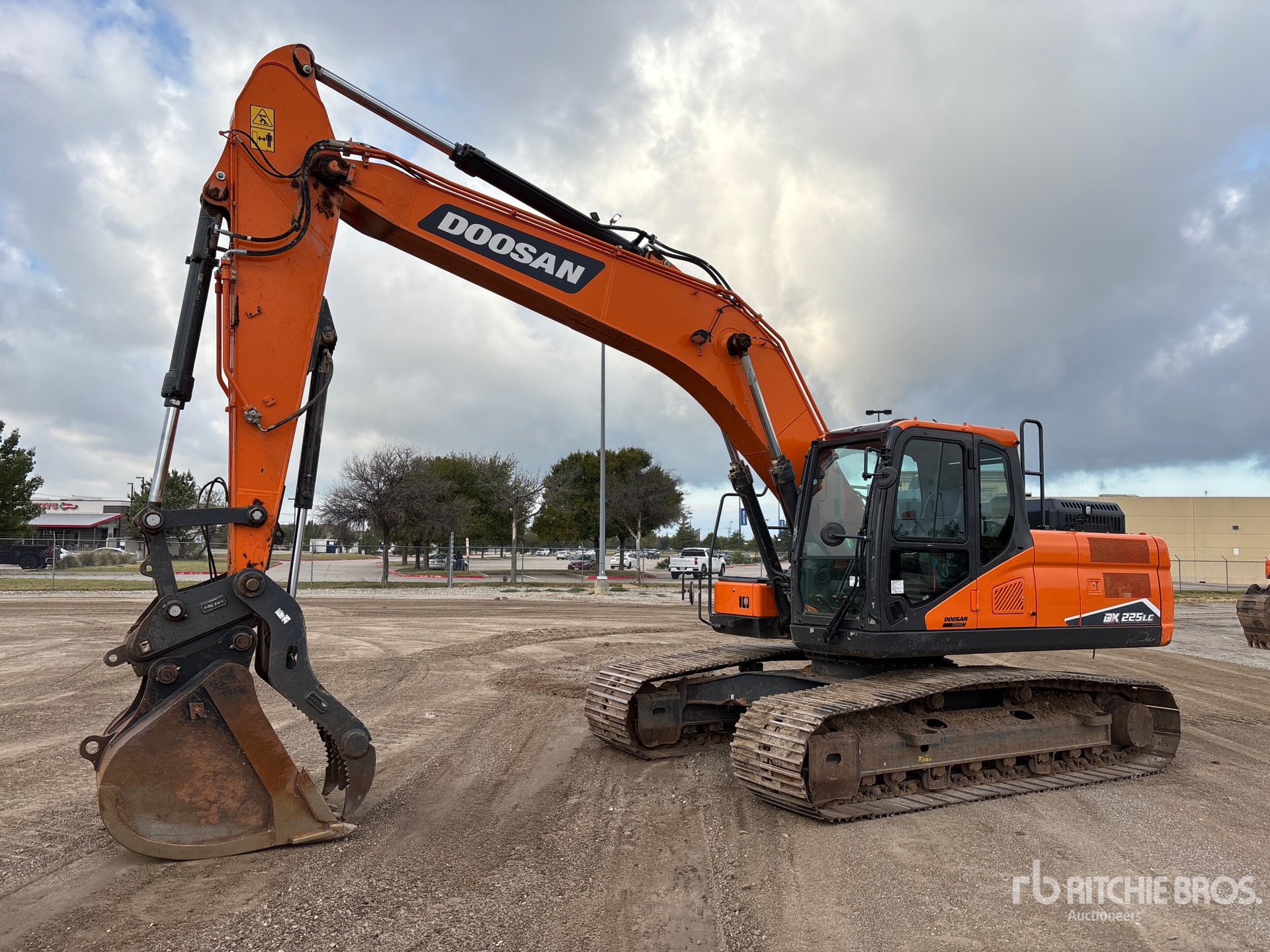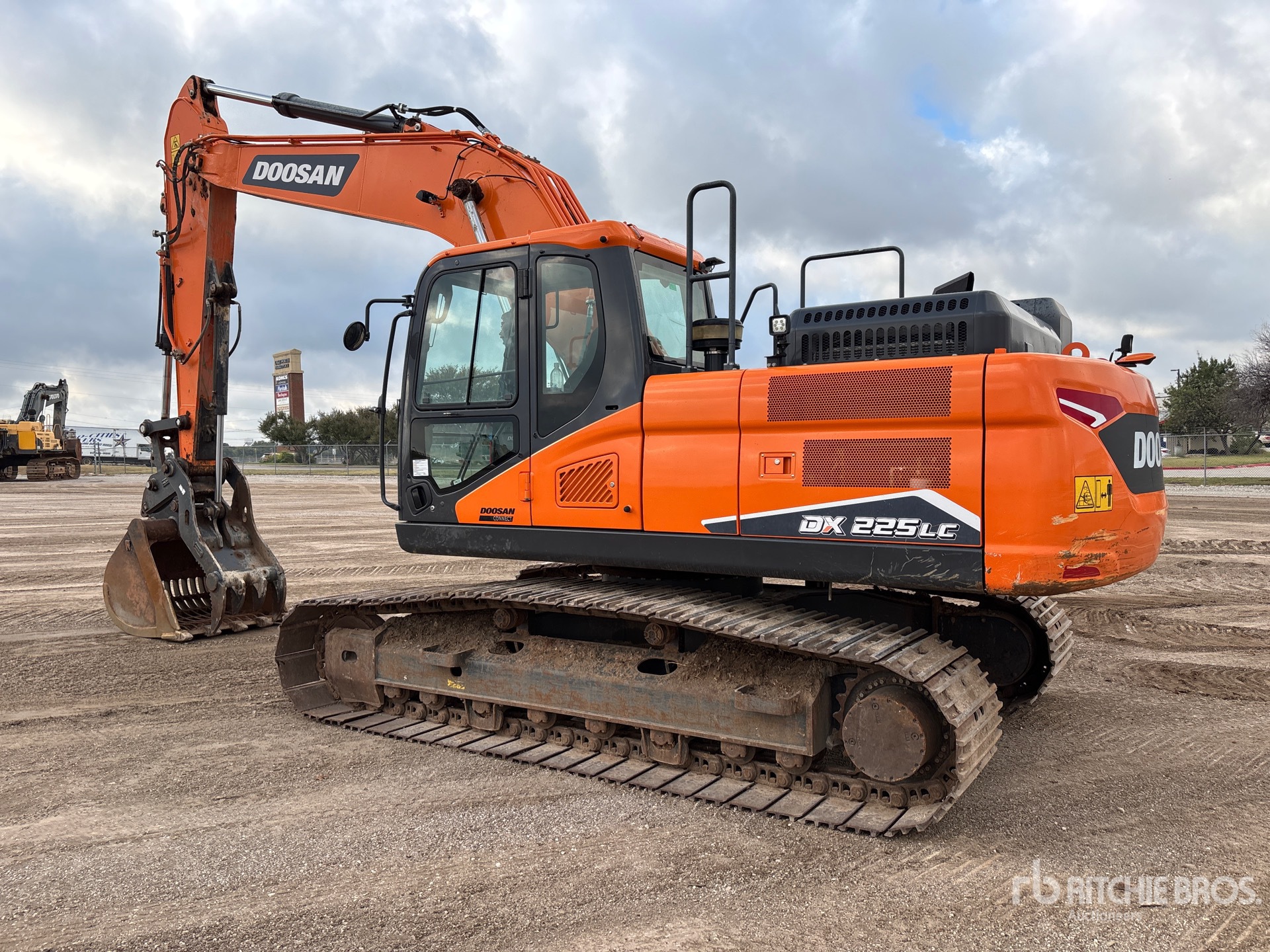 Situé sur la voie 58, emplacement 16, ce tracteur est équipé de la climatisation, de caméras de recul et latérales, d'une étiquette EPA américaine de 2022, nécessite du liquide d'échappement diesel, d'un bras de 2,95 m, de chenilles à triple crampon de 80 cm, d'une attache rapide hydraulique, d'un godet squelette de 122 cm et d'un pouce hydraulique.