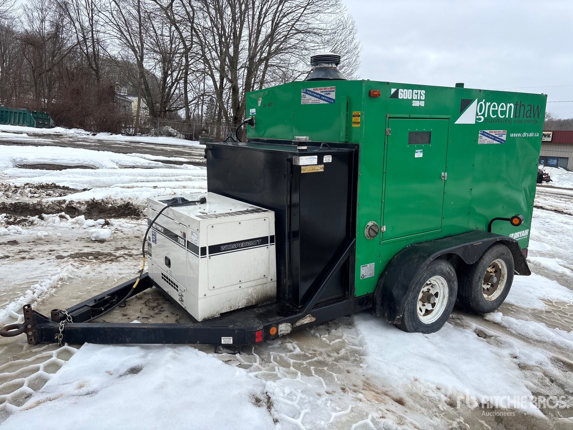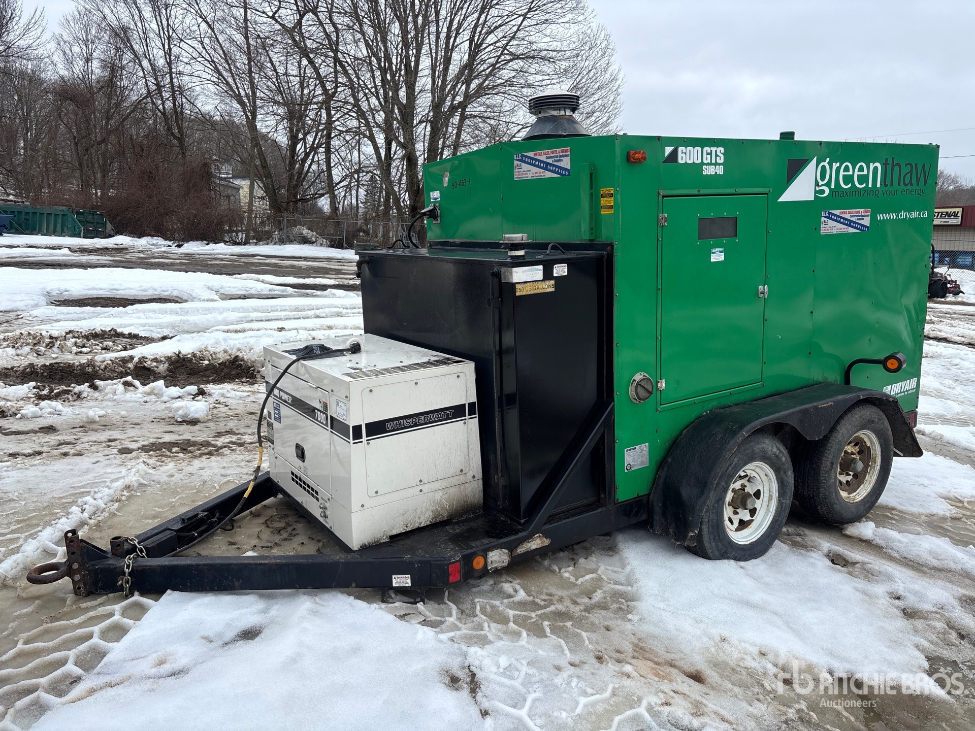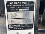 Générateur Whisperwatt DA-7000SSA3, monophasé, alimenté au mazout domestique, entrée 230 V, conforme aux normes Tier 4 et à l'étiquette EPA américaine 2022, conforme aux normes CARB, moteur diesel Kubota Z482 à 2 cylindres de 9,1 kW et 0,479 L, remorque porte-roue à anneau de lunette, freins électriques.