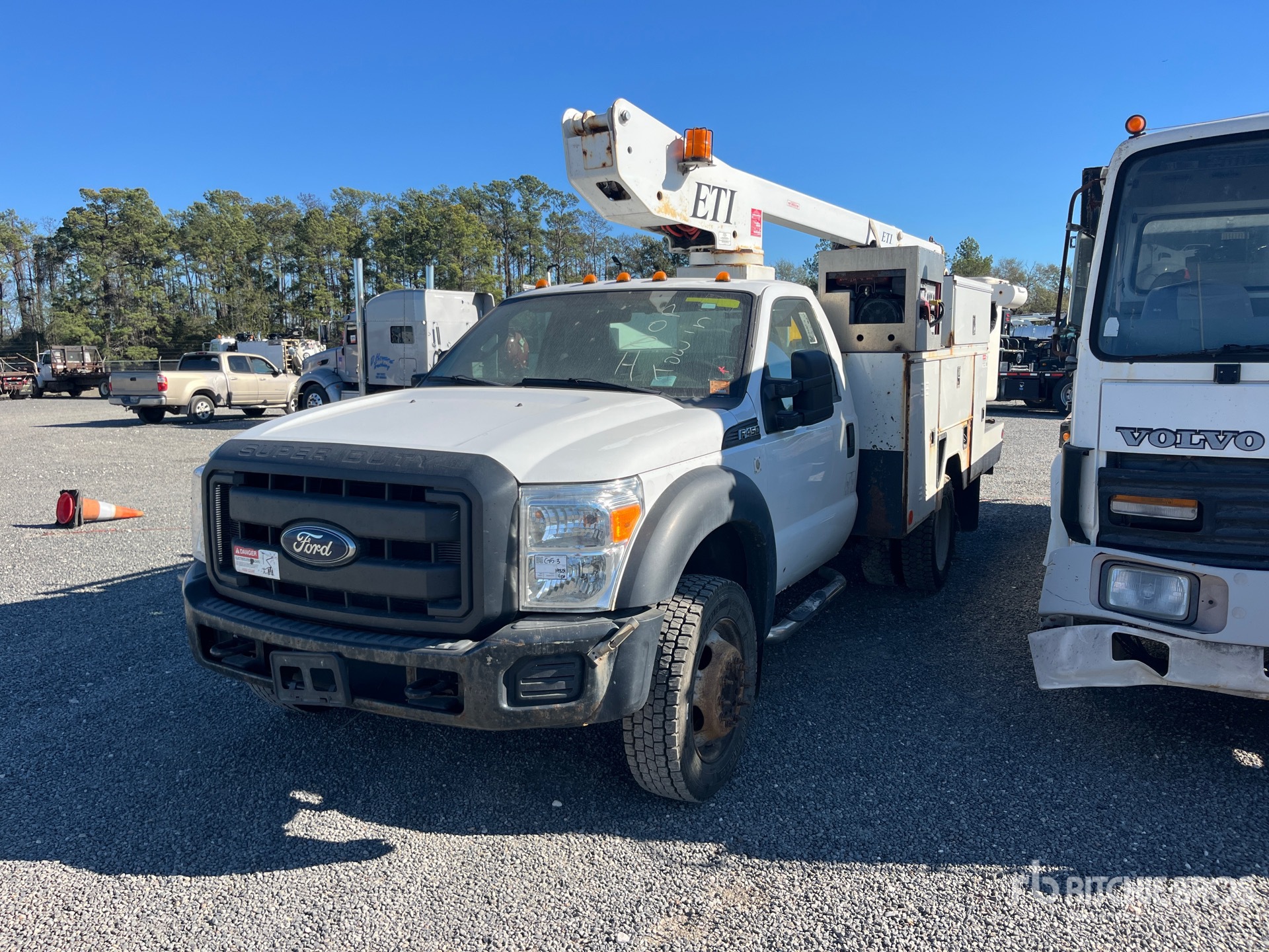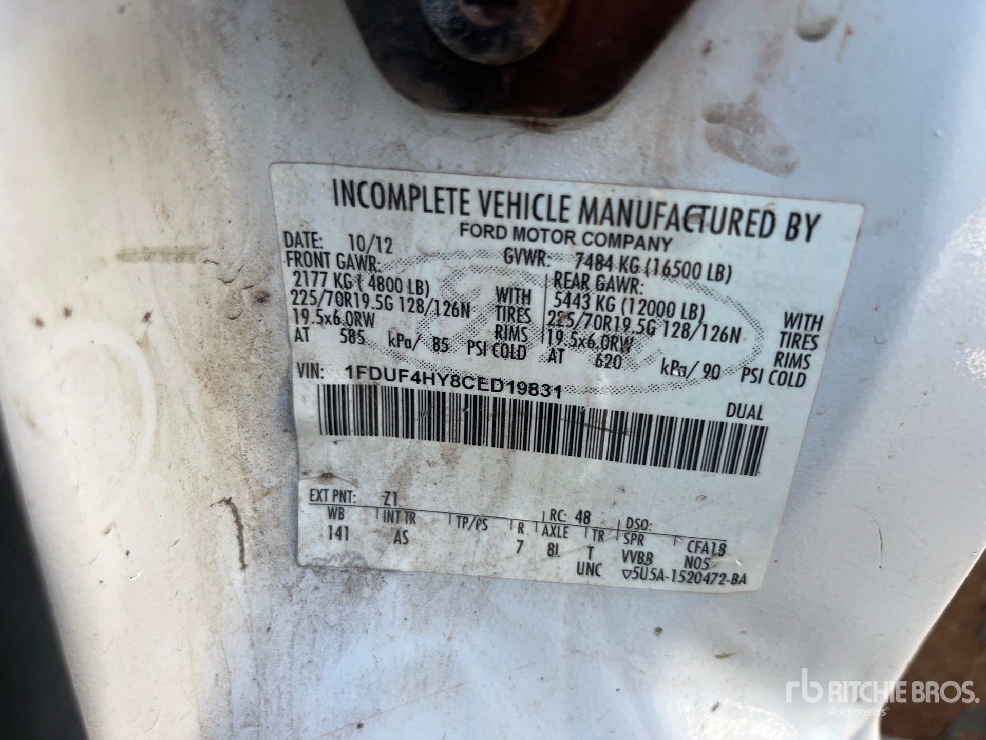 Moteur à essence V10 6,8 L, homologué EPA 2012, transmission automatique, essieu avant 2177 kg, essieux arrière 5443 kg, PTAC 7483 kg, pneus 225/70R19.5, suspension à ressorts, empattement 389 cm, capacité de charge 159 kg, flèche télescopique monoplace montée à l'avant, benne utilitaire de 3,43 m x 1,60 m