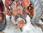 5 vitesses avant, 1 vitesse arrière, moteur de 35 ch, chargeur frontal, pneus avant 6.50-16SL, pneus arrière 13.6-38, masses sur les roues arrière
