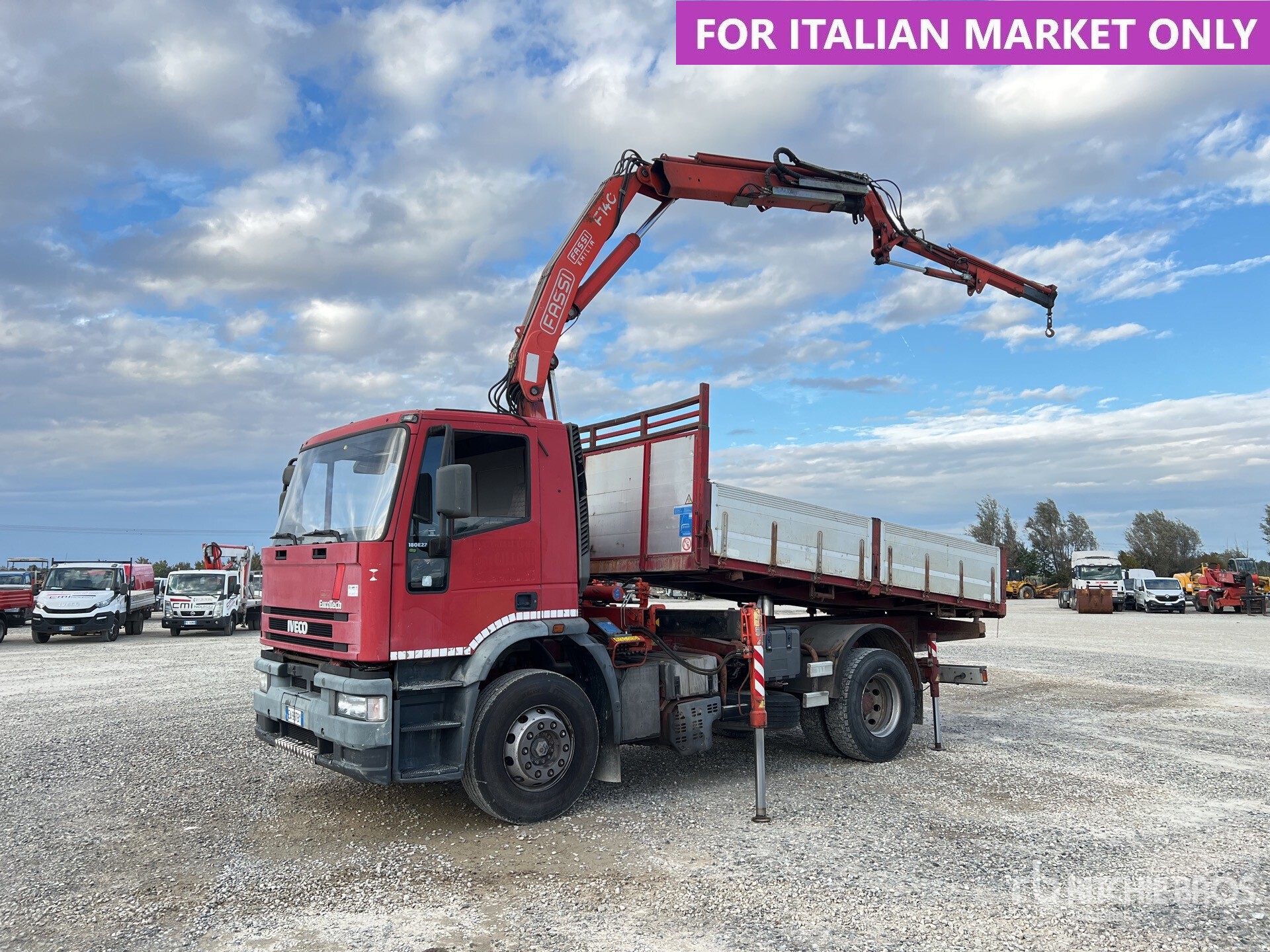 Moteur de 196 kW, transmission manuelle, pneus avant 295/80R22.5, pneus arrière 295/80R22.5, suspension à ressorts, empattement de 3 780 mm, capacité de charge de 1 350 kg, flèche de 14 500 mm, stabilisateurs escamotables et stabilisateurs arrière