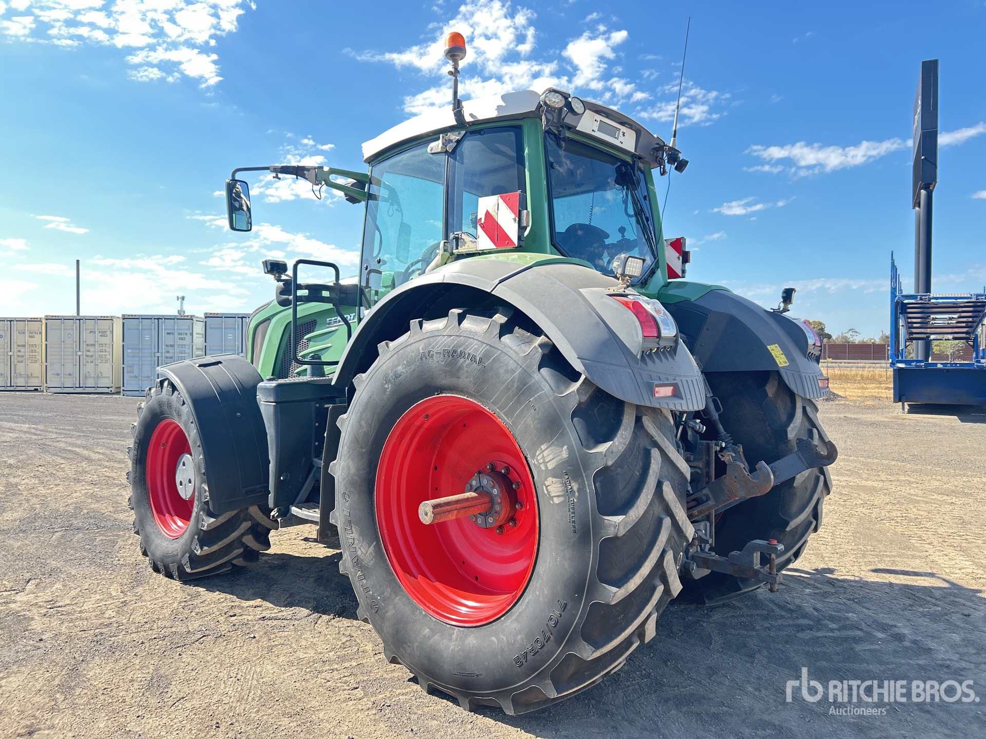 Cabine fermée, climatisation, siège à suspension pneumatique, transmission à variation continue (CVT), inverseur de marche avant/arrière, suspension de cabine, écran Fendt, prise de force avant, attelage rapide trois points avant, 1 distributeur hydraulique avant, essieu avant suspendu, 4 distributeurs hydrauliques arrière, 4 distributeurs hydrauliques arrière, ISOBUS, commandes extérieures d'attelage à trois points, prise de force 540/1000 tr/min, attelage trois points avec système d'attelage rapide, attelage de remorque, pneus avant 600/65R32, pneus arrière 710/70R42