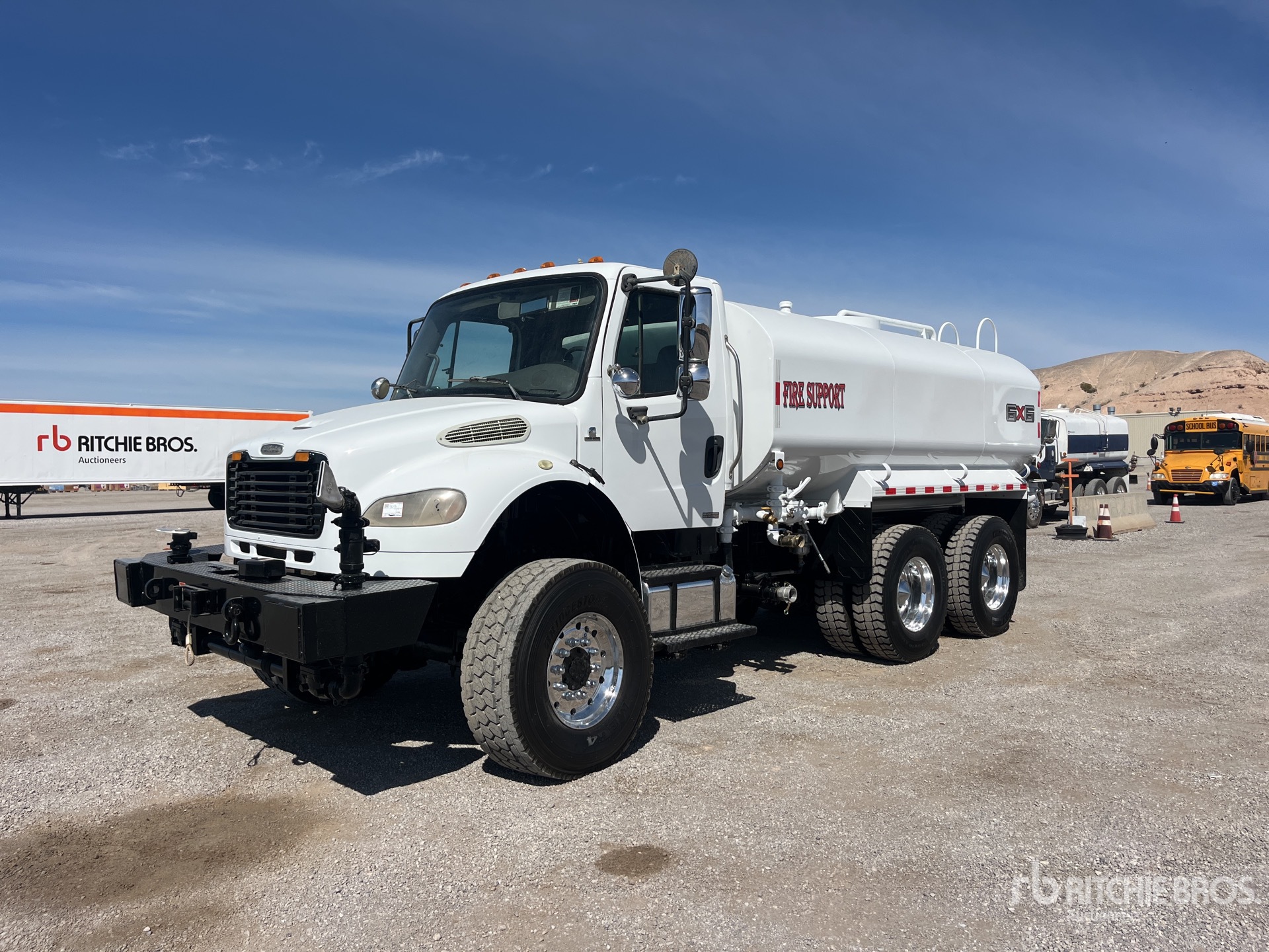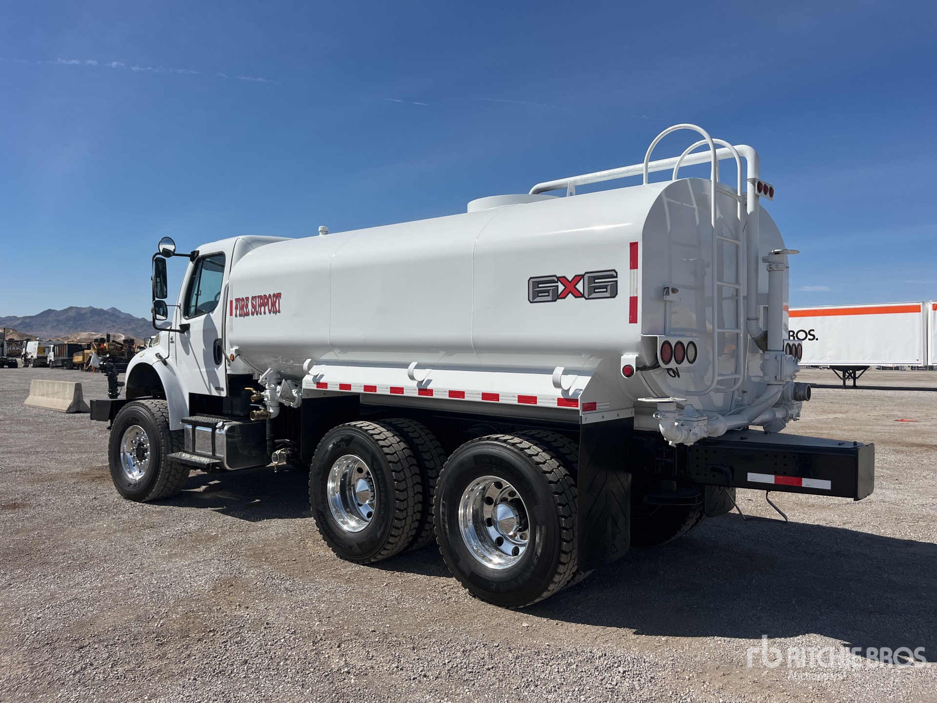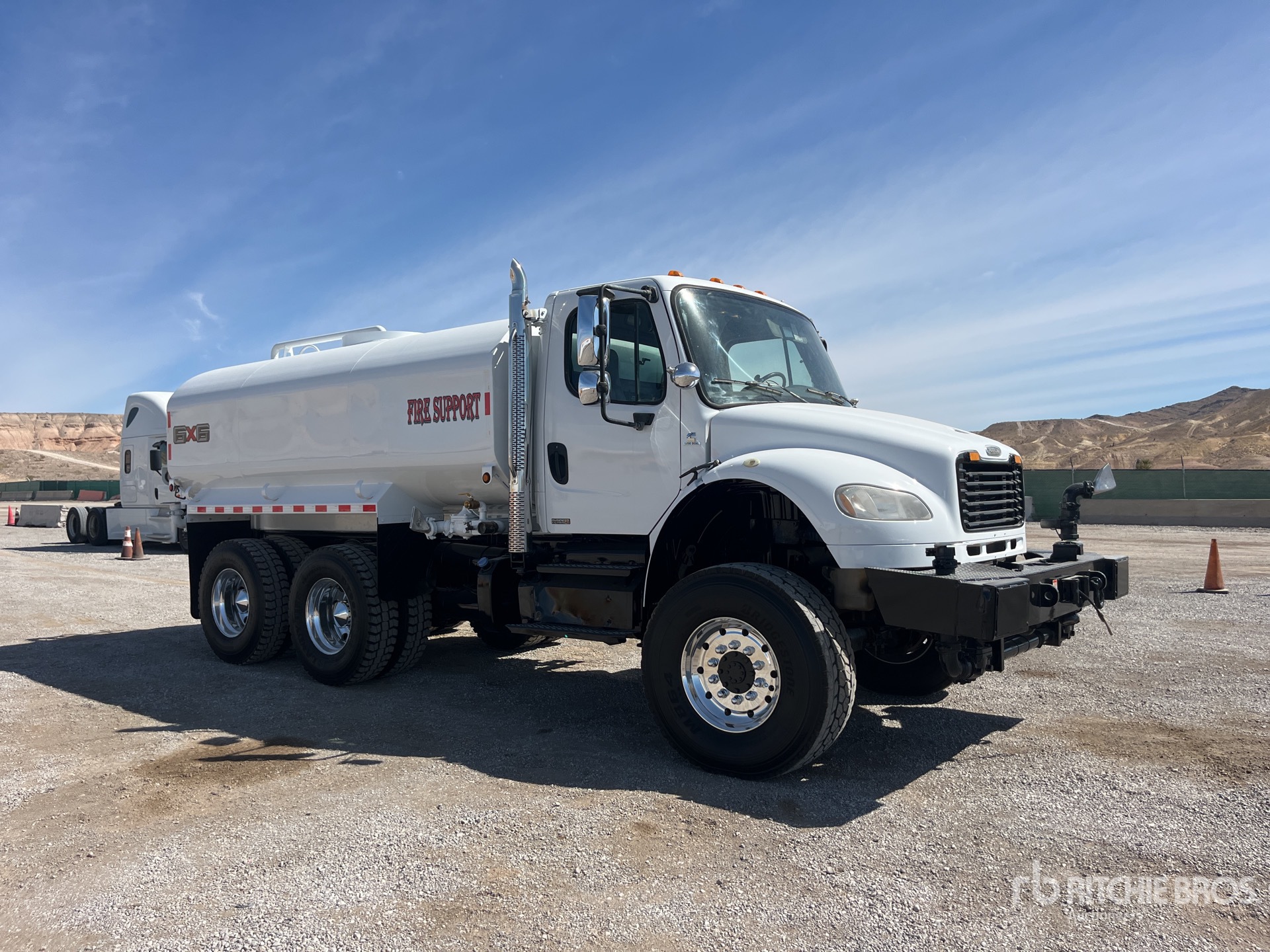 Moteur diesel Cummins ISC-300 6 cylindres 300 ch, 16 109 heures moteur, transmission automatique Allison 3500, essieu avant 5 443 kg, essieux arrière 7 938 kg, rapport de pont 4,80:1, PTAC 13 387 kg, jantes en aluminium, pneus avant 425/65R22.5, pneus arrière 315/80R22.5, suspension à balancier TufTrac en caoutchouc, empattement de 4 572 mm, prise de force, réservoir en acier de 15 114 litres, pompe entraînée par la prise de force, pulvérisation avant, pulvérisation arrière, pulvérisation latérale