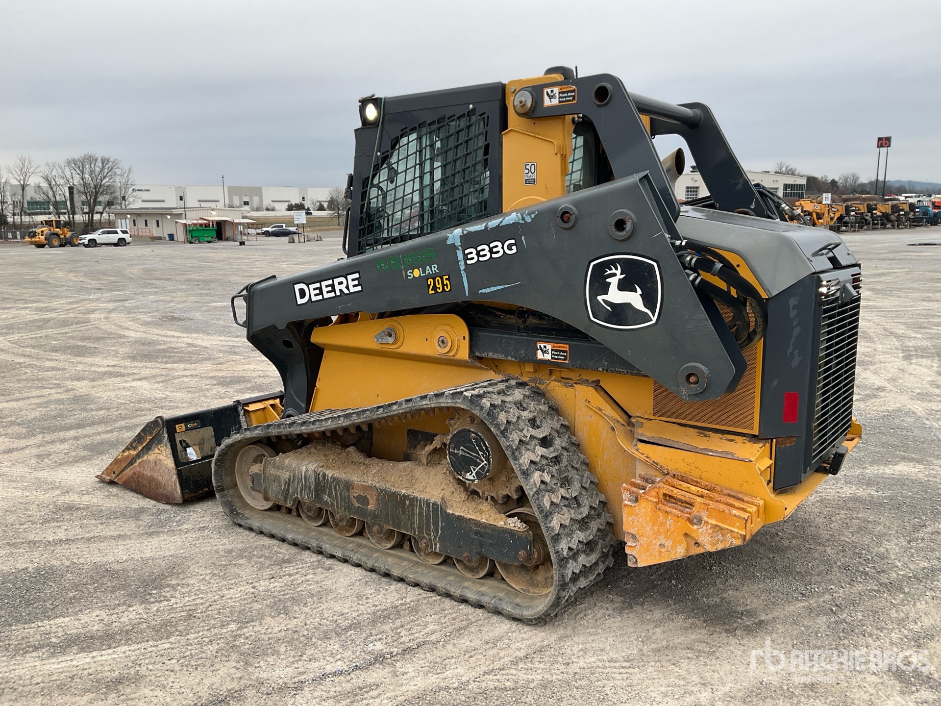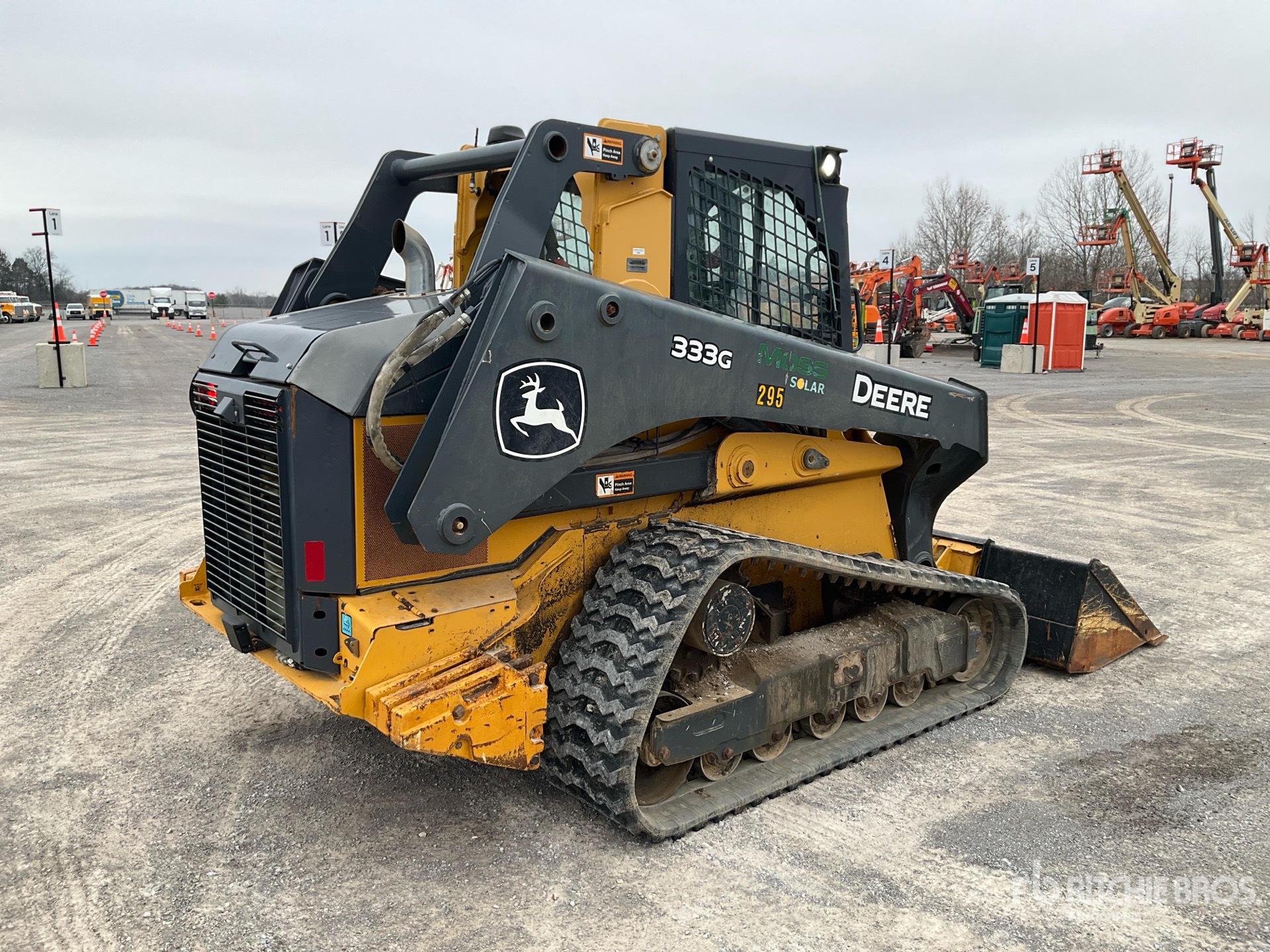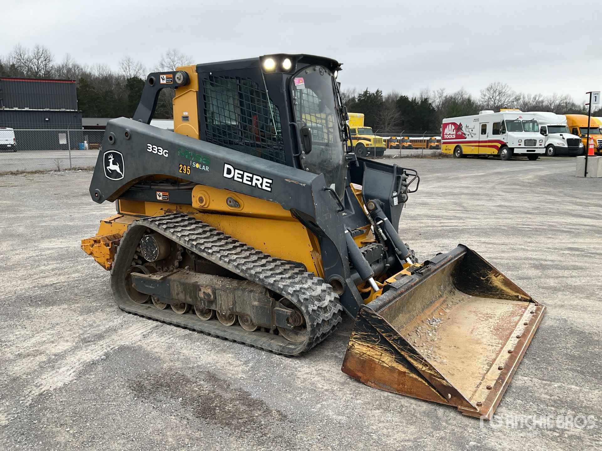 Cabine fermée, climatisation, direction par joystick, caméra de recul, nécessite du liquide d'échappement diesel, chenilles de 45,7 cm (18 po), faisceau électrique à 8 broches, attelage manuel, godet de 213 cm (84 po).