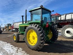 Cabine fermée, 16 vitesses avant, 6 vitesses arrière, gamme de quatre, 2 distributeurs arrière, prise de force 540/1000 tr/min, barre d'attelage pivotante, pneus avant 11.00x16, pneus arrière 18.4x38