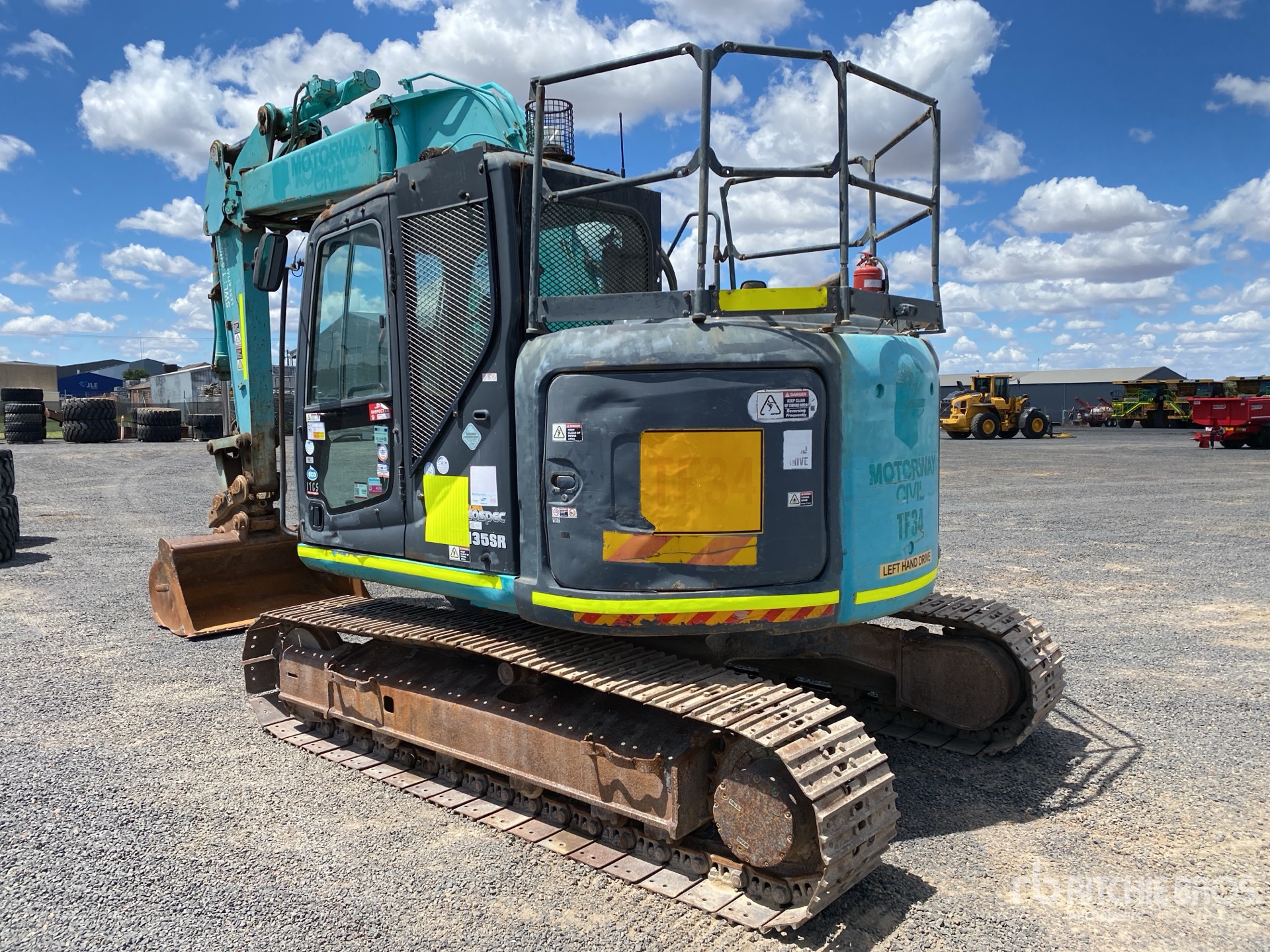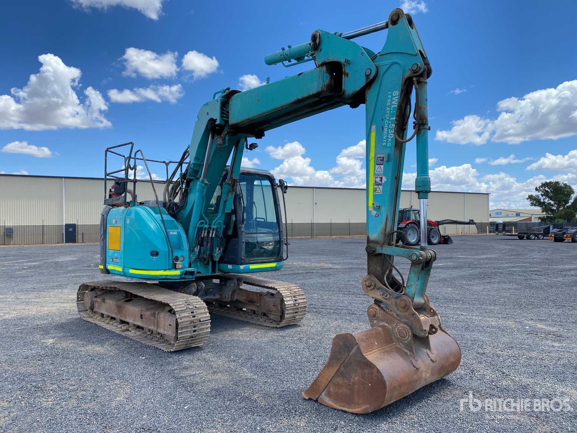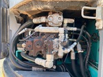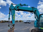 Climatisation, caméra de recul, arrêts d'urgence, flèche décalée parallèle, bras de 2 200 mm, clapet antiretour sur le bras, clapets antiretour sur la flèche, chenilles à triple crampons de 500 mm, attache rapide hydraulique, godet de nettoyage de 1 500 mm, garde-corps