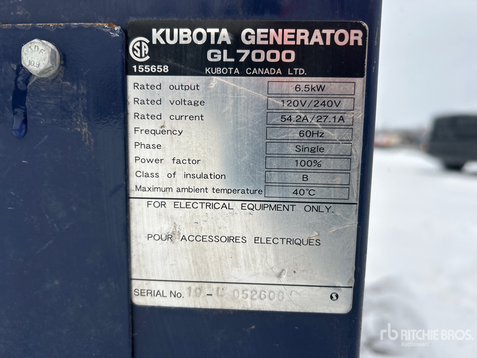 Les Informations détaillées de l’équipement sont d’une portée limitée, et les Encans Ritchie Bros. n’ont inspecté aucun autre aspect ou composant de l’équipement que ceux présentés expressément. Sauf indication précise, nous n’offrons aucune représentation ou garantie, officielle ou implicite, sur l’équipement ou ses composants, sans aucune limite de représentation ou de garantie en ce qui concerne la fonctionnalité, la conformité à toute norme de sécurité ou l’exigence de toute autorité ou agence de régulation en vigueur, l’adaptation à un quelconque usage, ou la valeur commerciale. Il vous est fortement conseillé d’effectuer votre propre inspection détaillée de l’équipement avant d’enchérir.