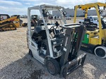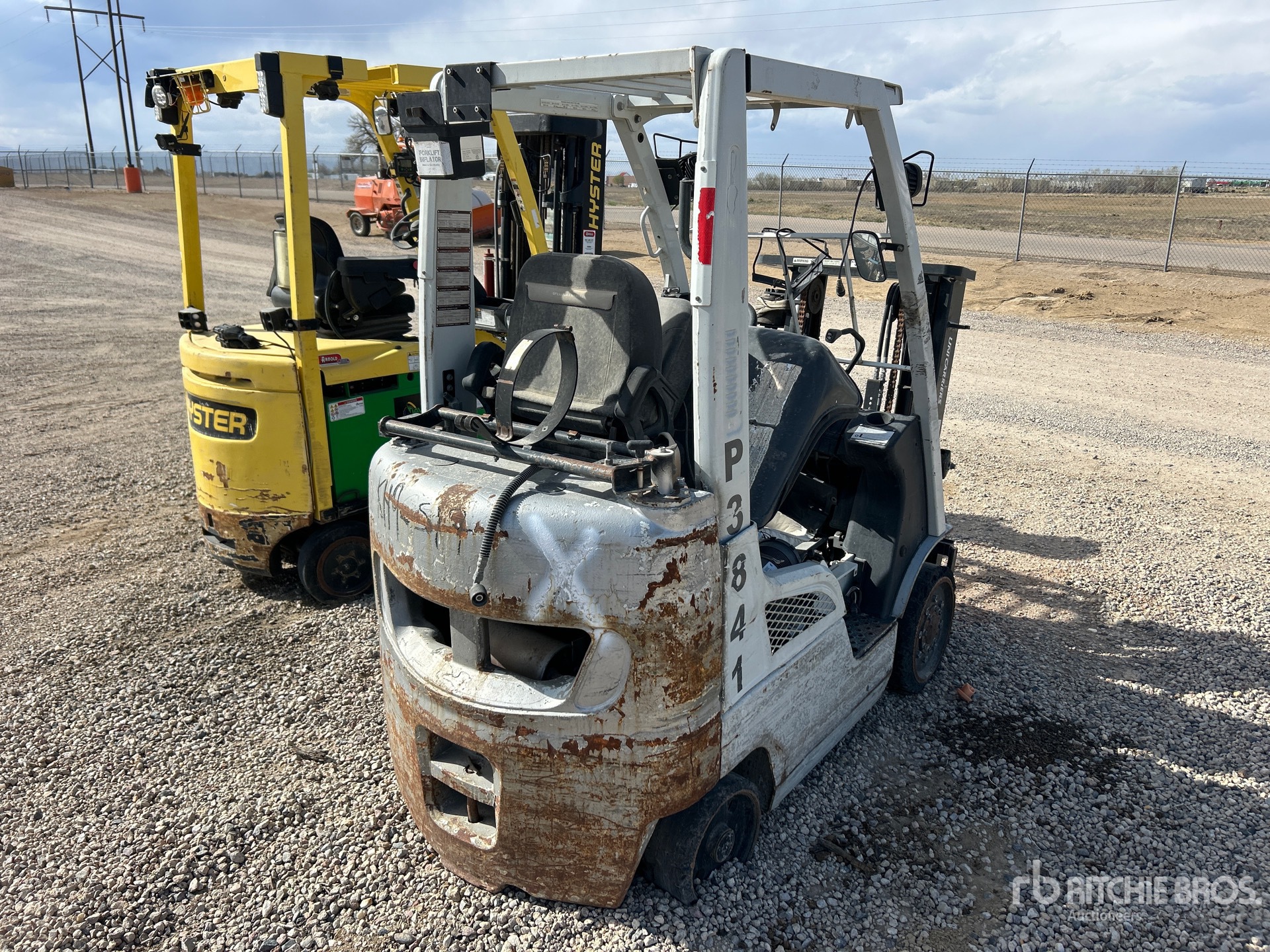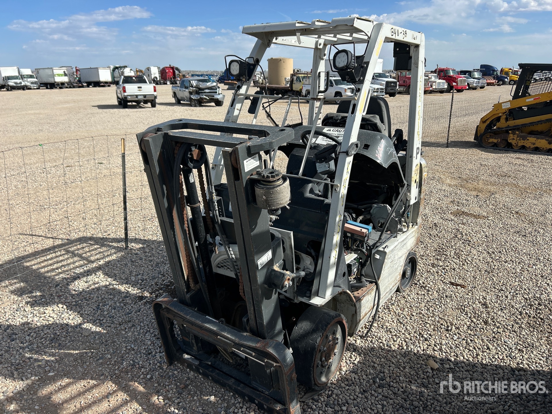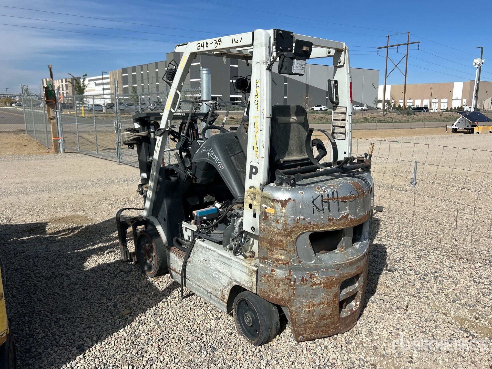 Mât à deux étages, hauteur de levage maximale de 203 cm, hauteur de mât abaissée de 147 cm, déplacement latéral, pneus pleins, conforme à la norme Tier 2, homologation EPA américaine 2014, moteur GPL GCT 2,1 L
