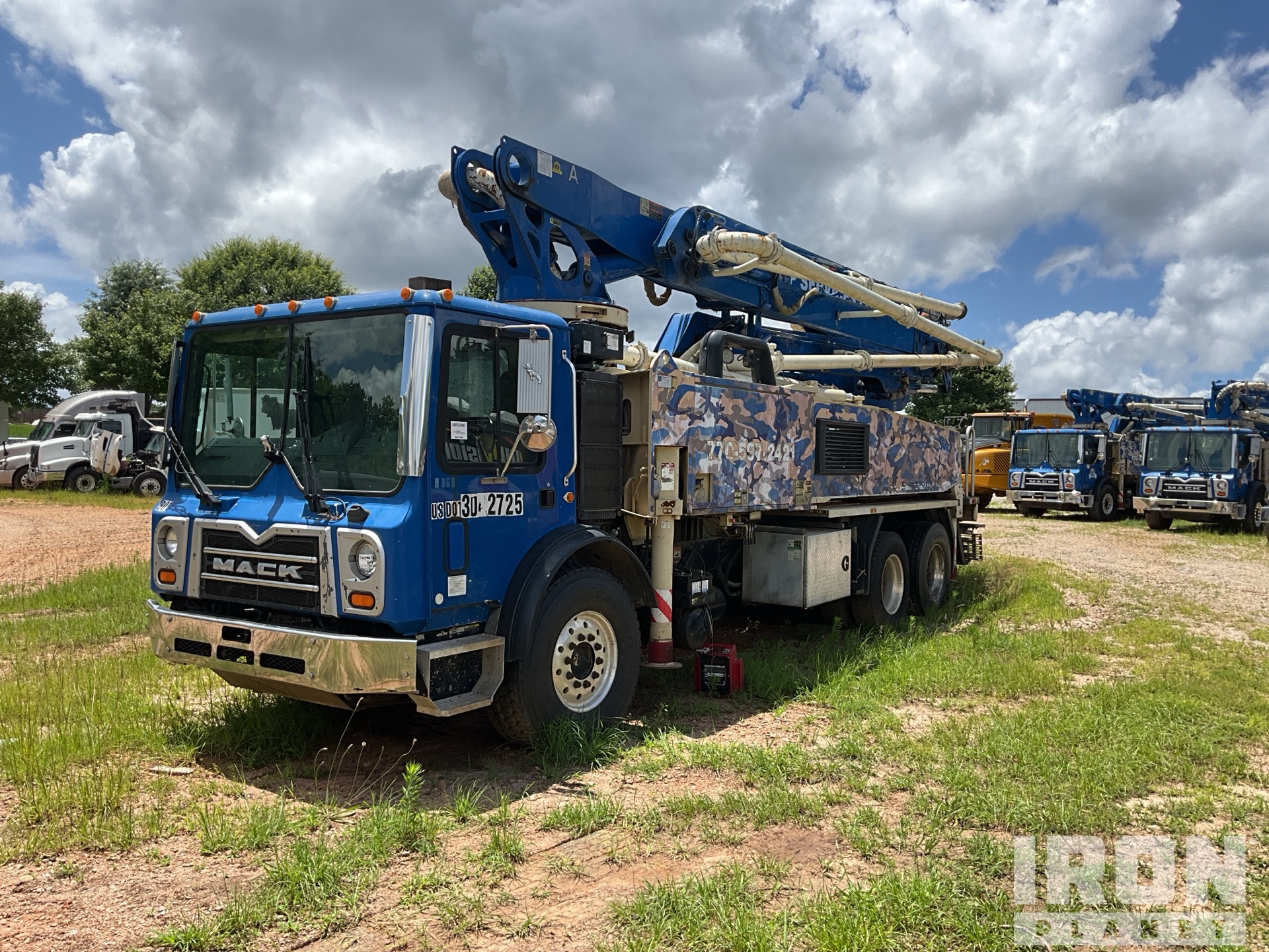 Camion Mack MP7, moteur diesel 6 cylindres 10,8 L 425 ch, homologué EPA 2017, nécessite un additif pour réservoirs de diesel, 2 730,6 heures de fonctionnement, frein moteur, transmission automatique Allison, essieu avant 9 072 kg, essieux arrière 18 144 kg, PTAC 27 216 kg, jantes extérieures en aluminium, pneus avant 425/65R22.5, pneus arrière 11R22.5, suspension à ressorts Camelback, empattement de 5,69 m, prise de force, éclairage de flèche, patins de stabilisateurs, commande de flèche ergonomique (EBC).