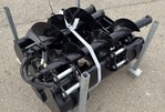 (1) Godet de 20 cm, (1) Godet de 60 cm, (1) Godet de 80 cm, (1) Tarière avec mèches de 20 cm et 30 cm, (1) Attache rapide, (1) Râteau, (1) Ripper, (1) Grappin, (1) Jeu de dents de godet avec lame latérale. Les images présentées sont des photos d'illustration. Article neuf/non utilisé.