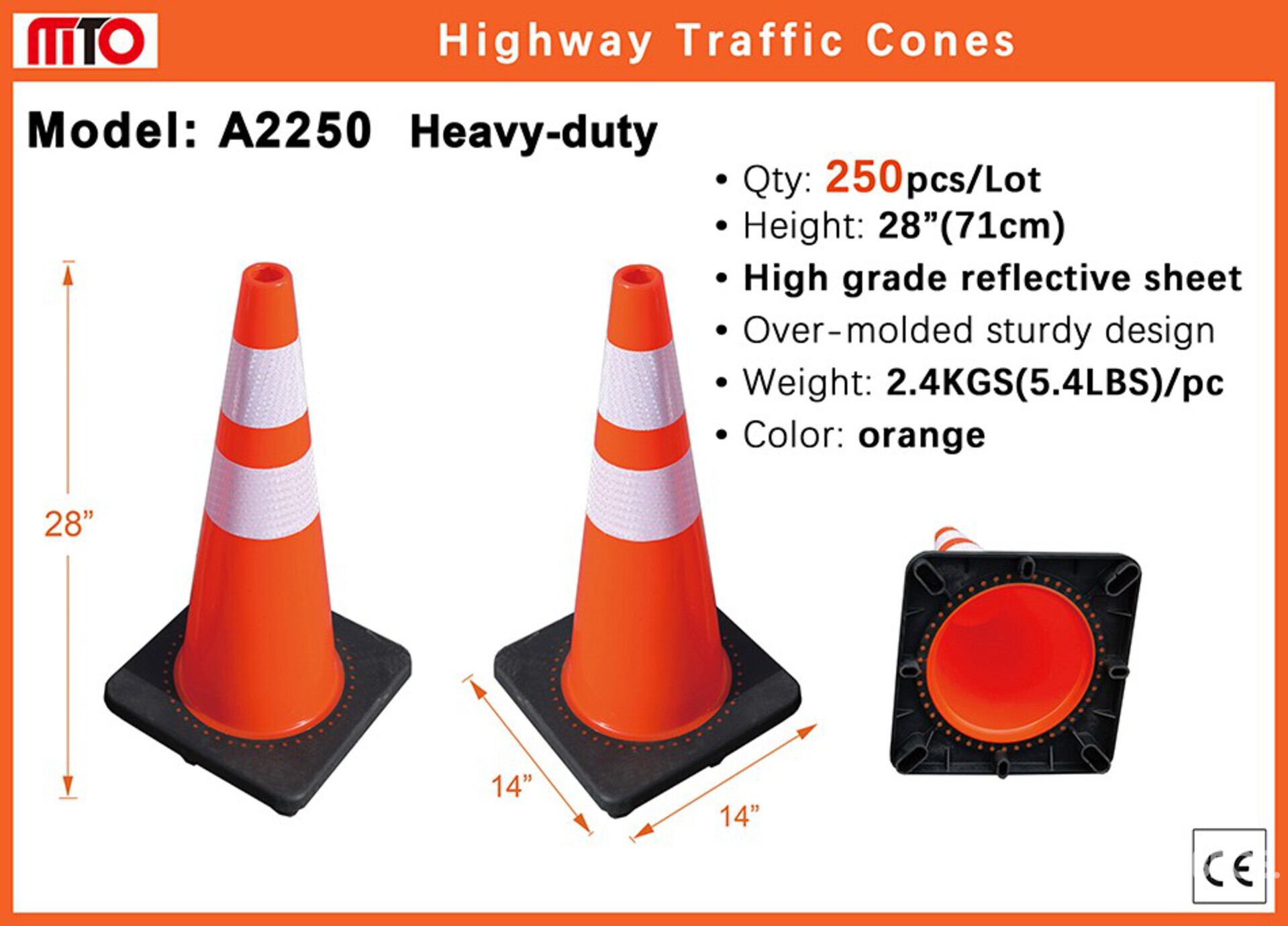 Quantity of (250) 2026 MTO A2250 28 in Cônes d'autoroute (Unused)