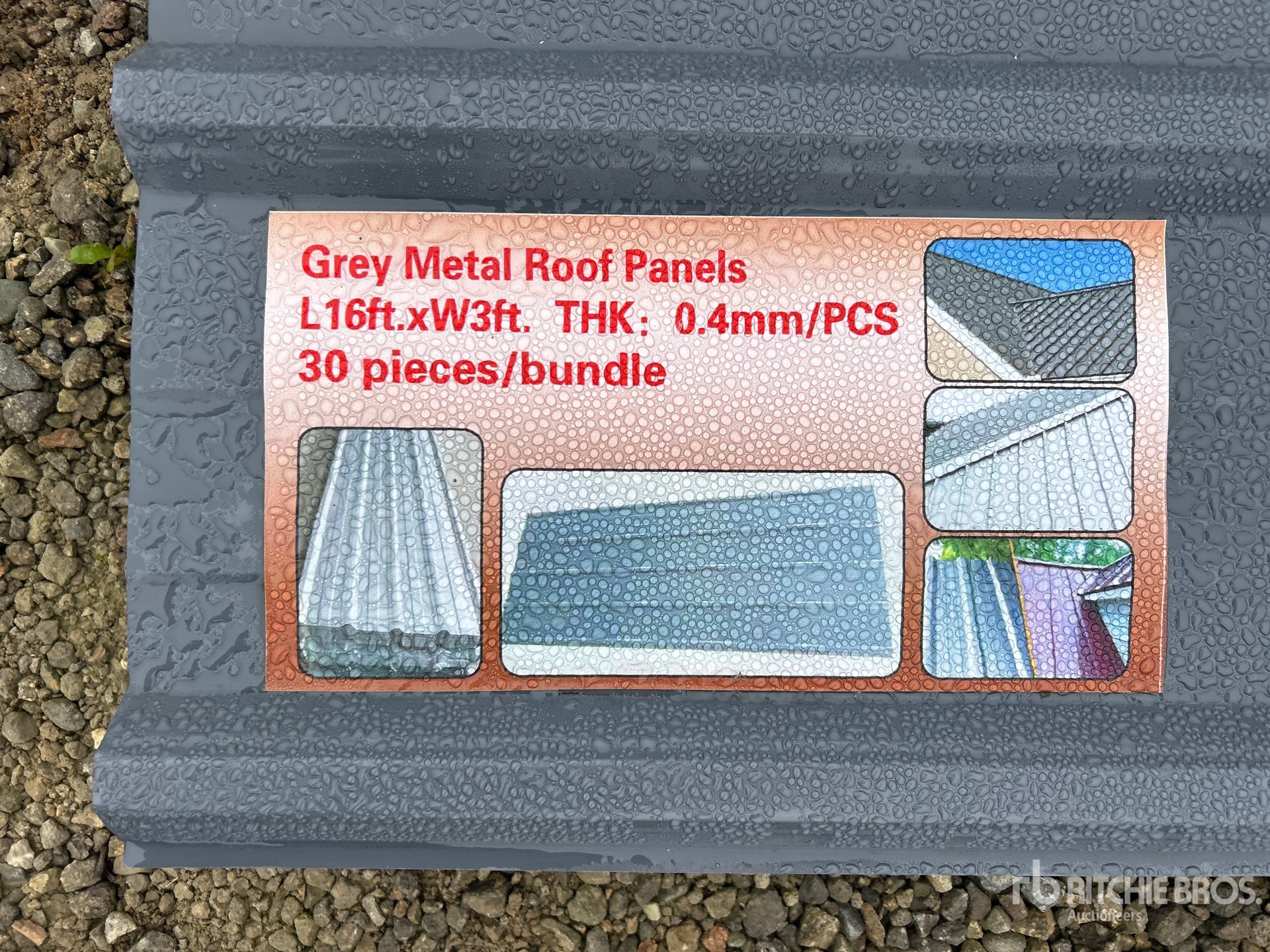 Quantity of (30) 16 ft x 3 ft Grey Metal Roof Panels Divers - autres (Unused)