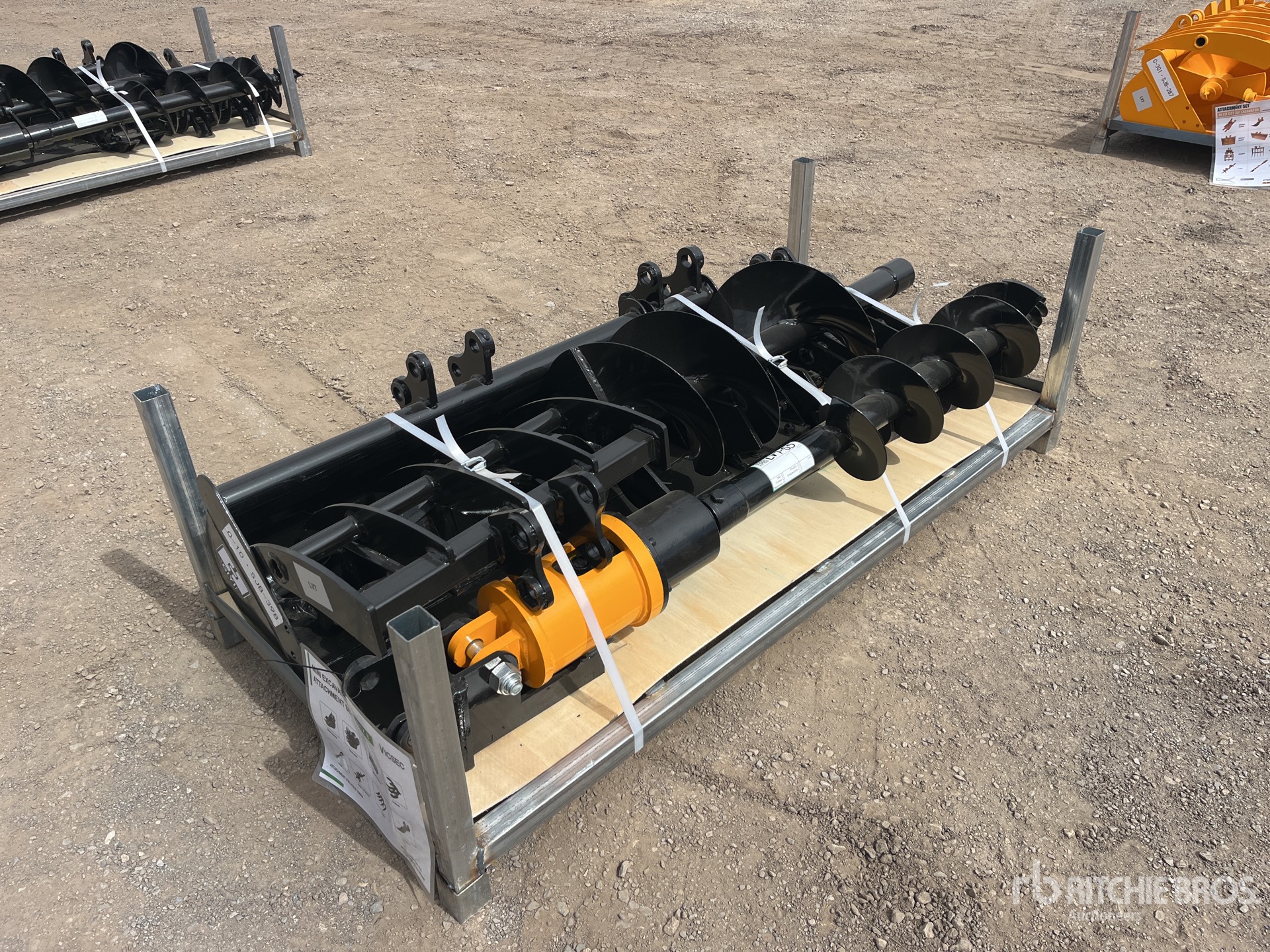 Axes de 25 mm de diamètre, entraxe de 90 mm, entraxe intérieur de 90 mm, attache rapide, râteau, grappin, godet de 200 mm, godet de 800 mm, tarière avec mèche de 203 mm et mèche de 304 mm, ripper