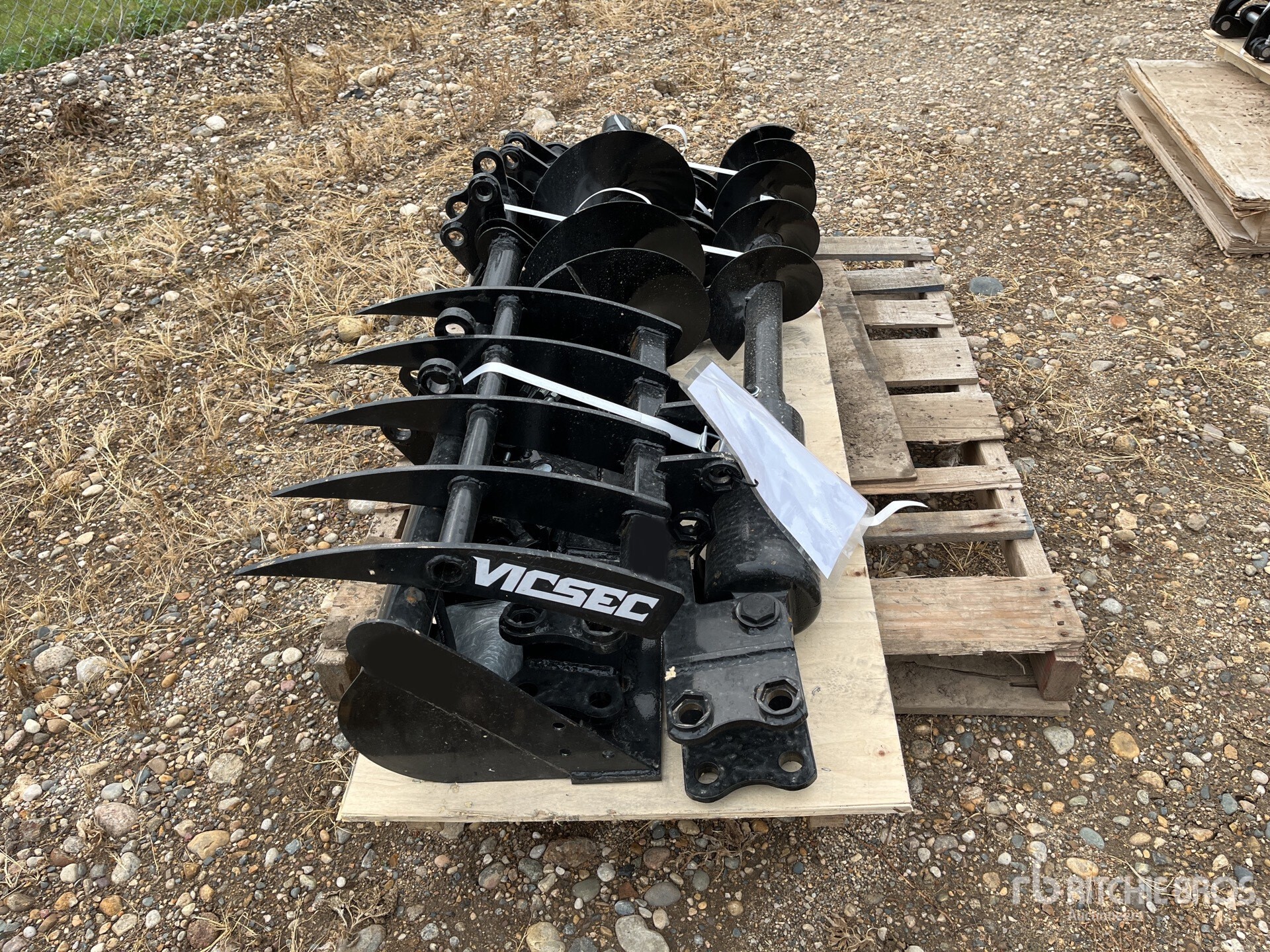 Attache rapide, râteau, grappin, (1) godet de 20 cm, (1) godet de 81 cm, tarière avec (1) mèche de 20 cm et (1) mèche de 30 cm, ripper