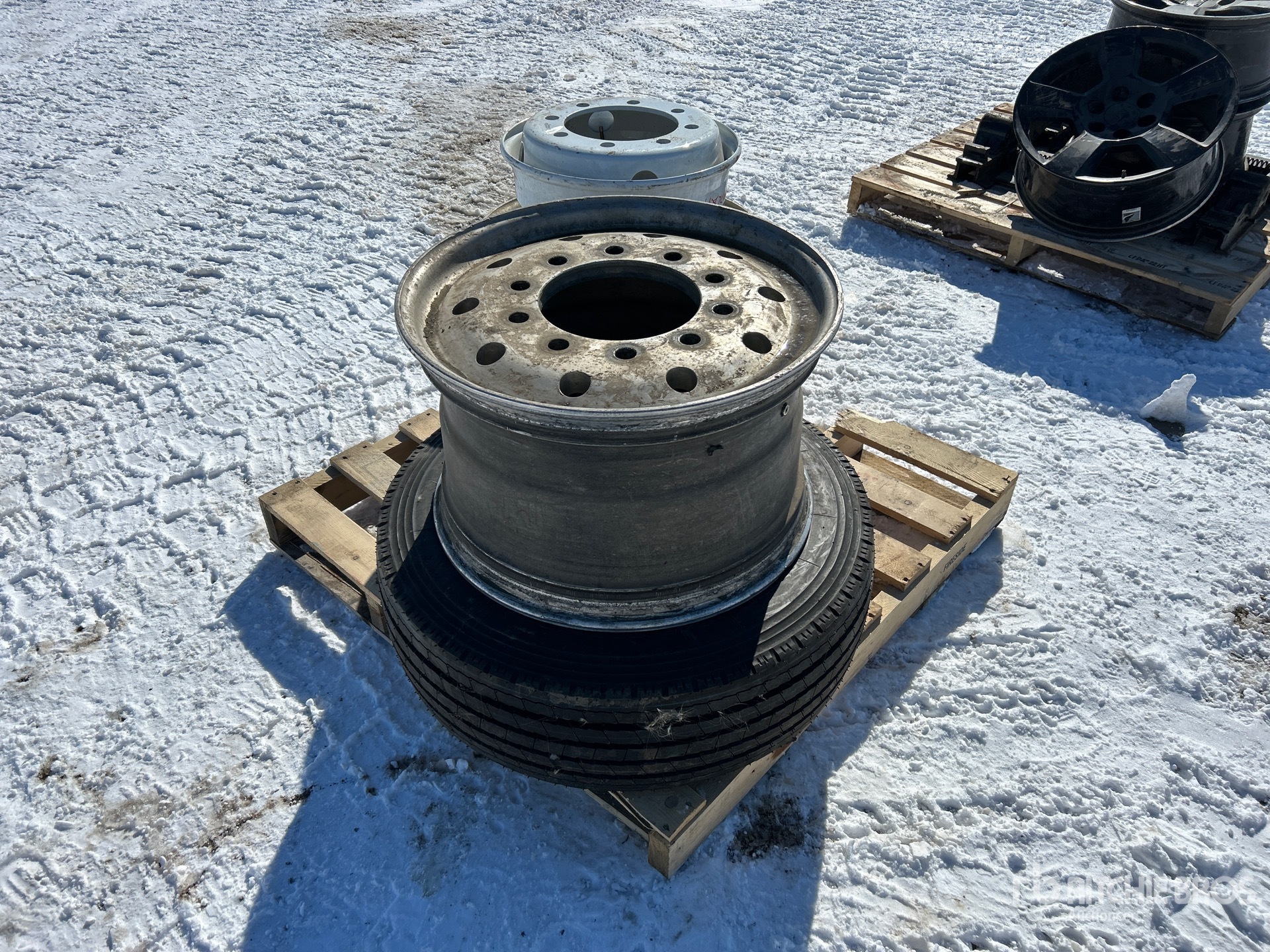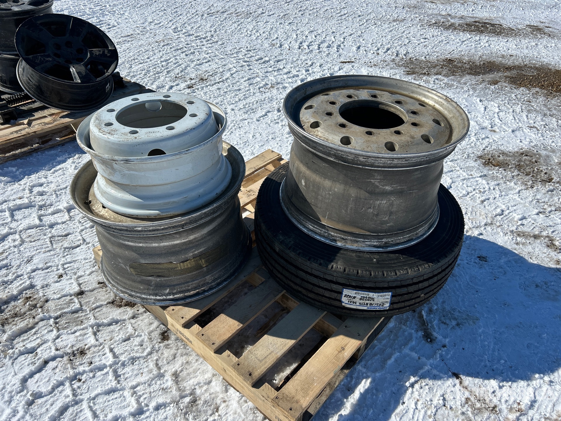 (3) Roues, (1) Pneu neuve 245/70R17.5 avec jante
