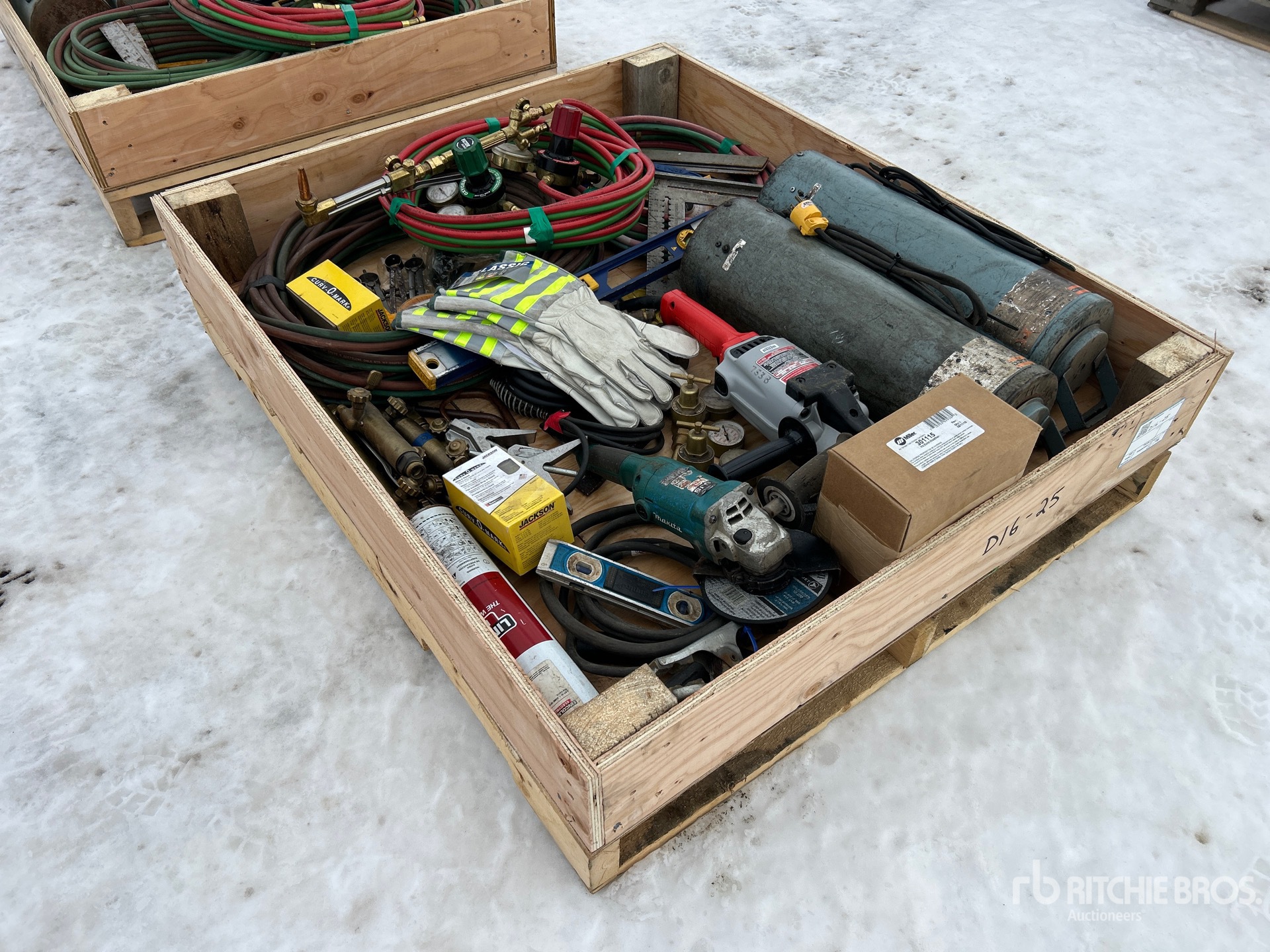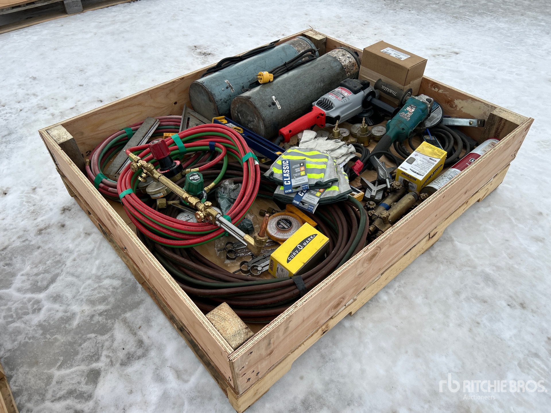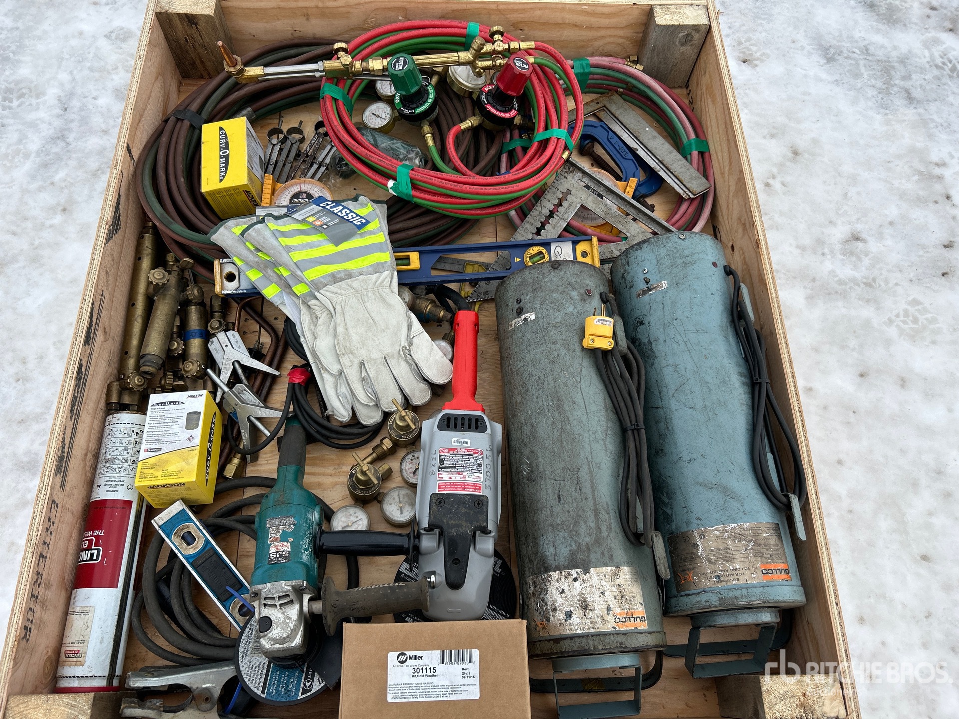 Meuleuses d'angle, gants de travail, niveaux, porte-tiges, tuyaux, baguettes, divers matériaux de soudage