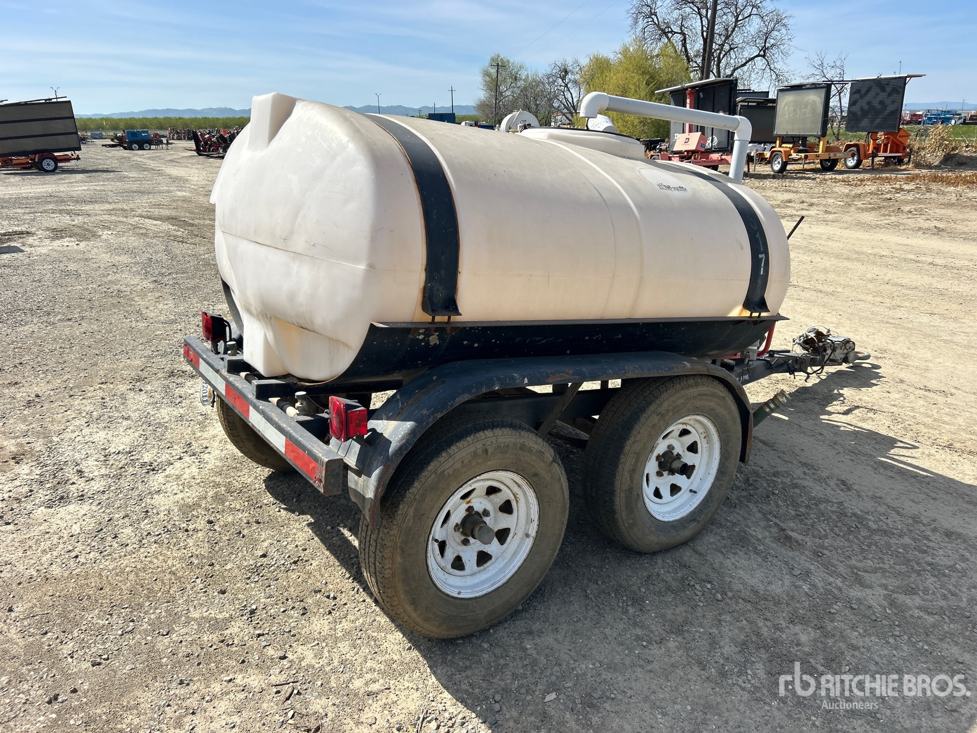 Attelage Lunette, suspension à ressorts, freins à inertie, pneus 225/75R15, réservoir en polyéthylène, pompe à essence Honda