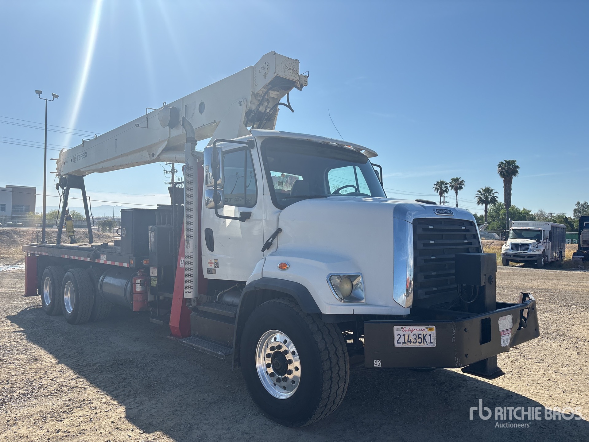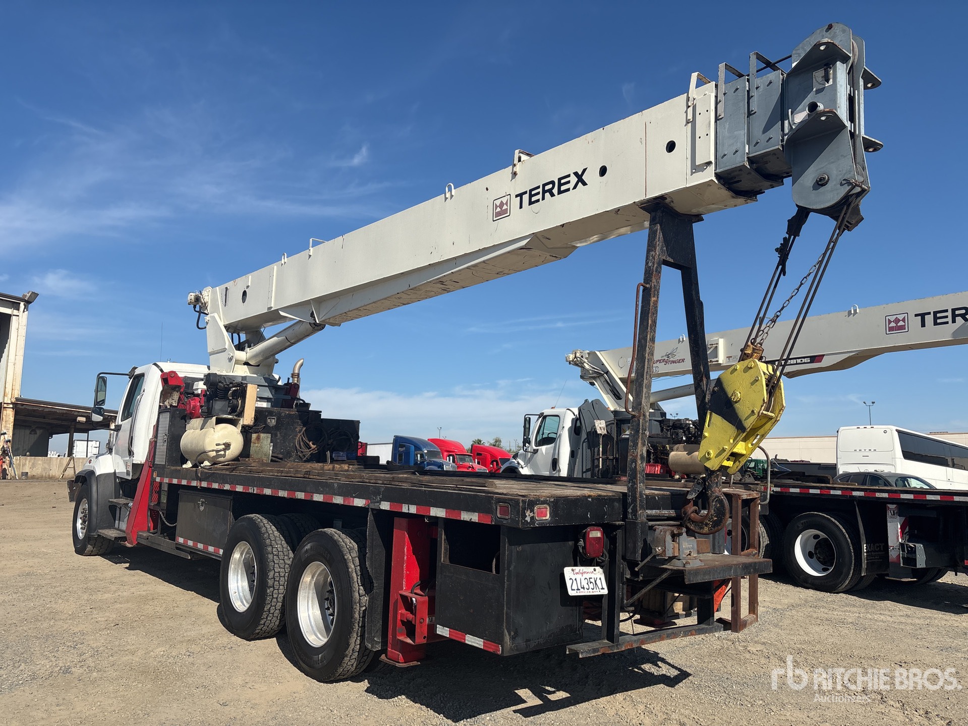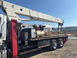 Moteur diesel Cummins 6 cylindres, nécessite du liquide d'échappement diesel, 6 448 heures moteur, frein moteur, boîte de vitesses manuelle Eaton Fuller, double blocage de différentiel, cabine à suspension pneumatique, pneus avant 425/65R22.5, pneus arrière 11R22.5, double direction, châssis renforcé, suspension à balancier avec silentblocs en caoutchouc TufTrac, empattement de 6,65 m, prise de force, flèche télescopique 3 sections de 7,62 m à 28 m, palan à 1 poulie, double commande, stabilisateurs avant, stabilisateurs arrière, 5e stabilisateur, plateau de 6,40 m x 2,59 m, compresseur d'air à moteur à essence
