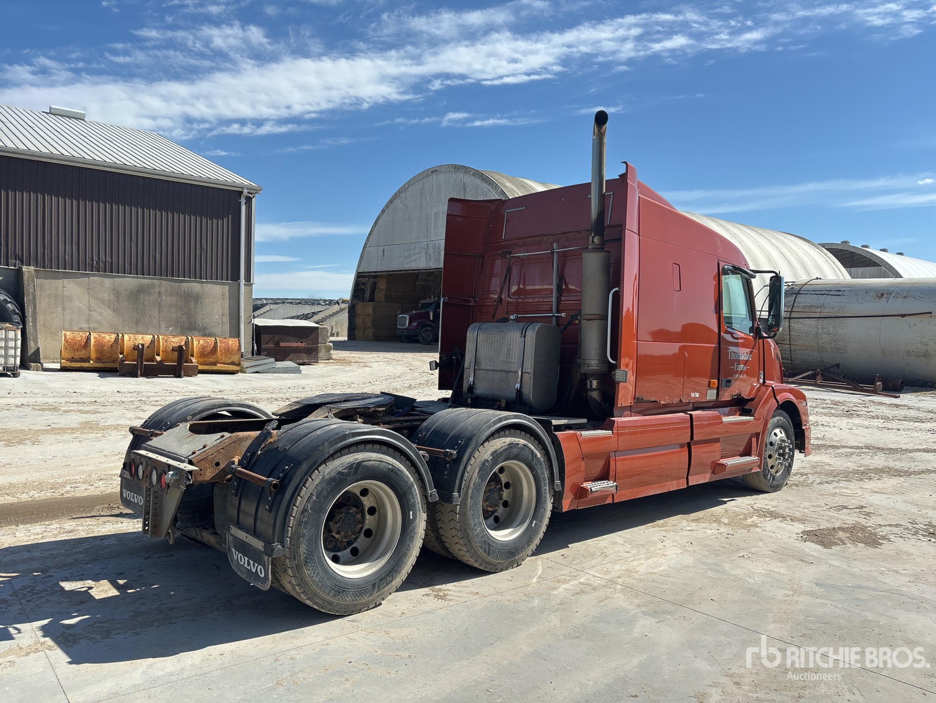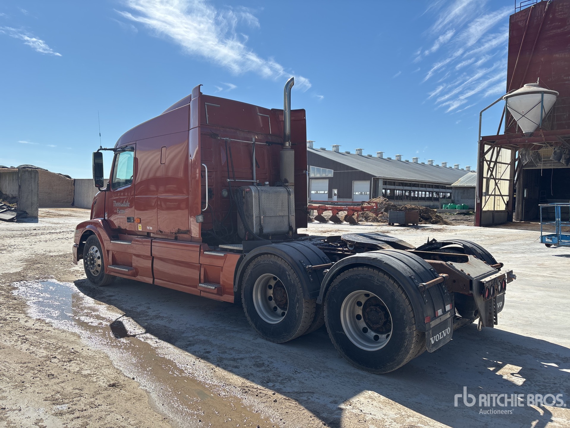 Moteur Volvo D12 de 465 ch, homologué EPA (États-Unis) 2006, 12 274 heures de fonctionnement, boîte de vitesses manuelle Eaton Fuller RTLO-16913A à 13 rapports, essieu avant de 5 987 kg, essieu arrière de 18 144 kg, PTAC de 24 114 kg, frein moteur, double blocage de différentiel, cabine couchette à toit surélevé de 155 cm, lits superposés, empattement de 518 cm, suspension pneumatique, jantes en aluminium, pneus 11R22.5, groupe hydraulique, sellette d'attelage coulissante pneumatique, double réservoir de carburant.