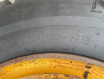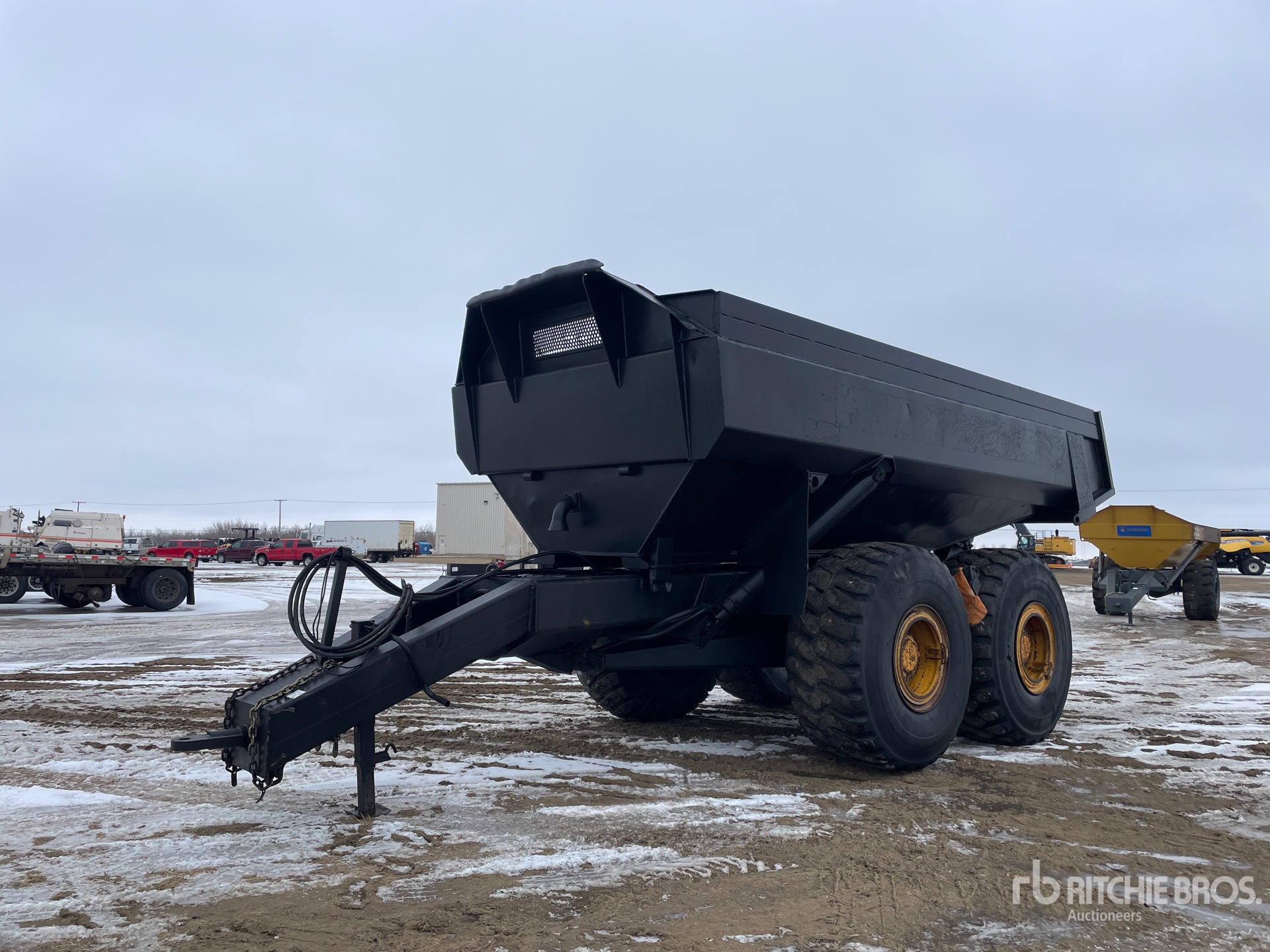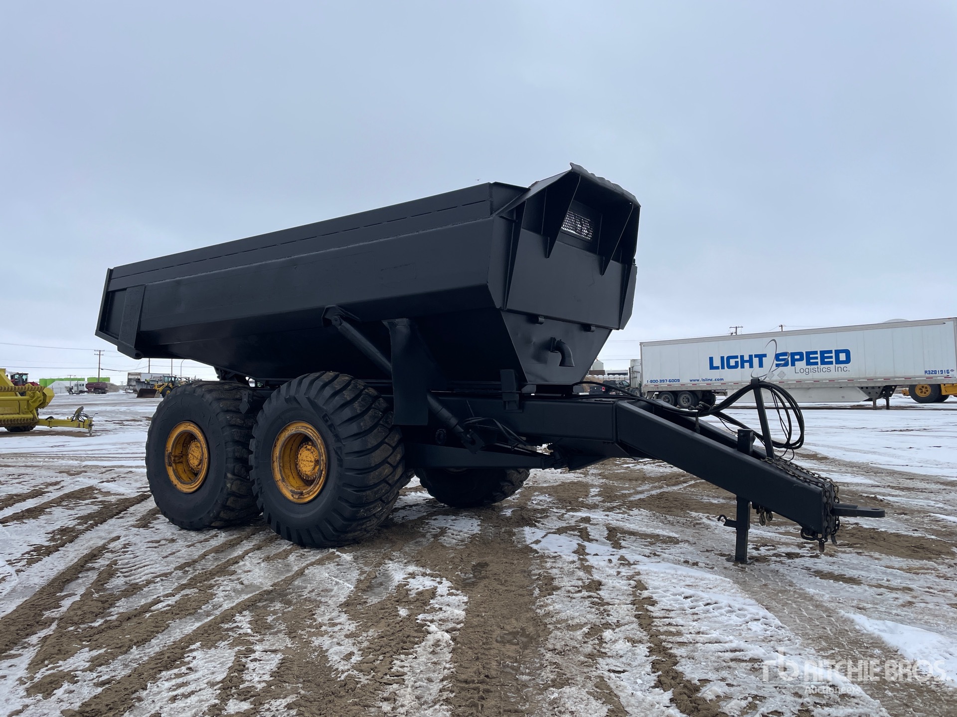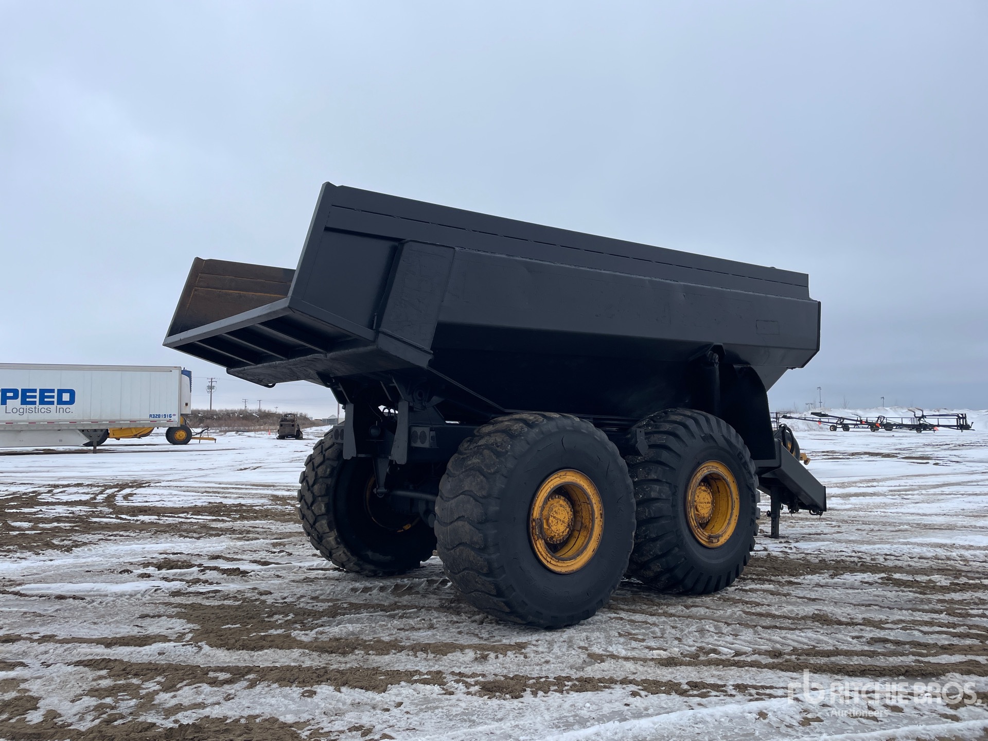 Suspension à blocs de caoutchouc, caisse de 6,10 m, parois latérales de 1,50 m, caisse en acier, pneus 26,5-25