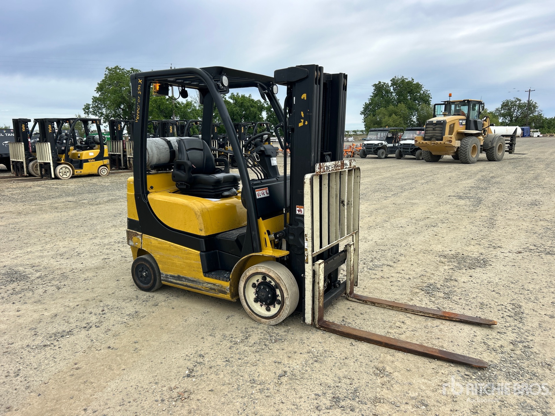 Mât à 3 sections, hauteur de levage maximale de 4,80 m, hauteur de mât abaissée de 2,07 m, fourches de 1,22 m, déport latéral, pneus pleins, homologation EPA américaine 2019, moteur GPL 2,4 L Power Solutions International