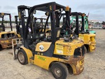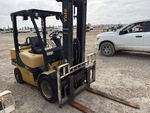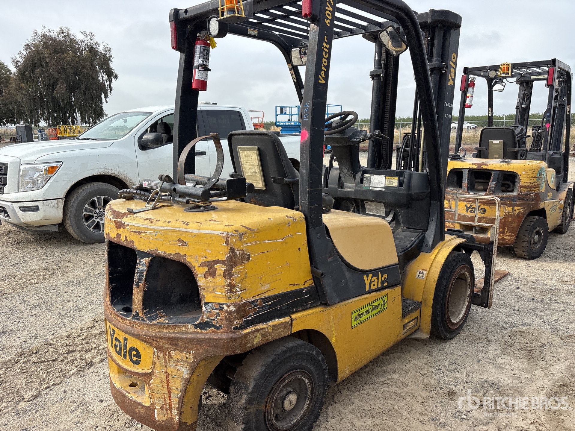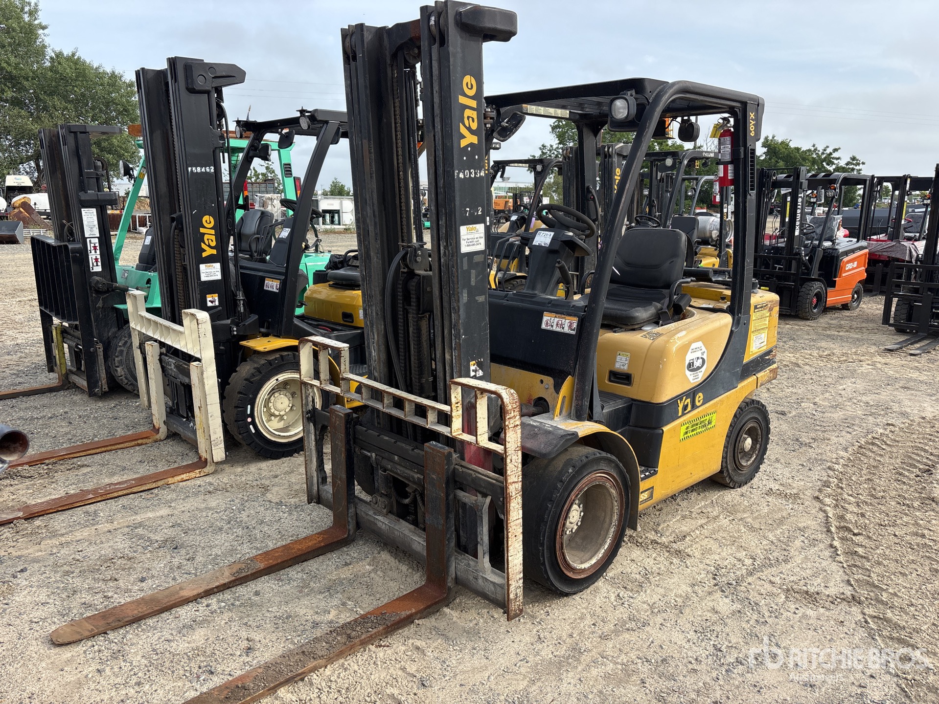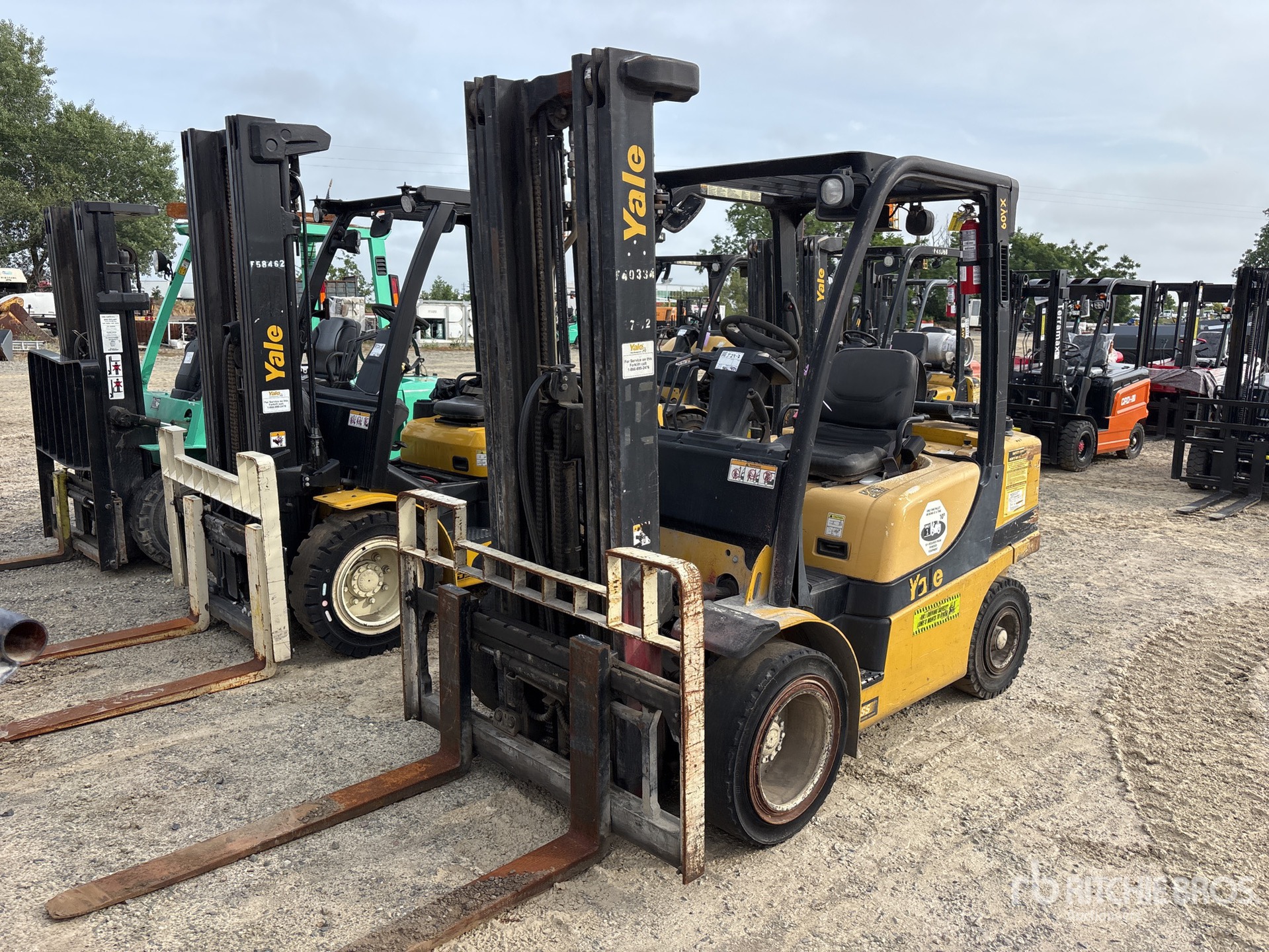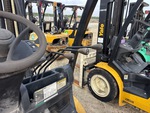 Mât à 3 sections, hauteur de levage maximale de 198 po, hauteur de mât abaissée de 87 po, fourches de 47 po, déport latéral, pneus pleins, moteur GPL 4 cylindres