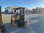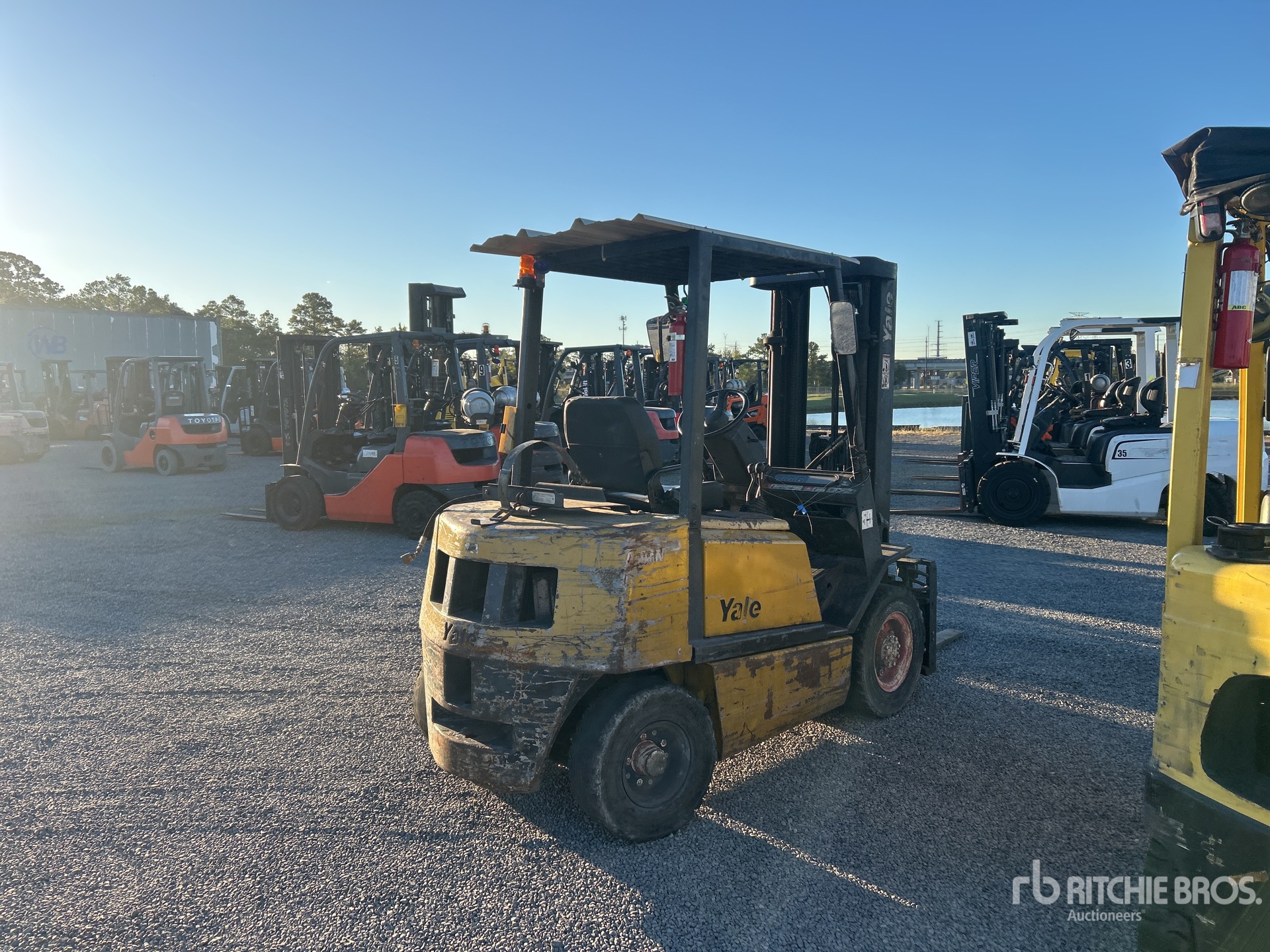 Mât à 3 sections, levage libre total, hauteur de mât abaissée de 213 cm, fourches de 112 cm, positionneur de fourches, pneus pleins, moteur GPL 4 cylindres